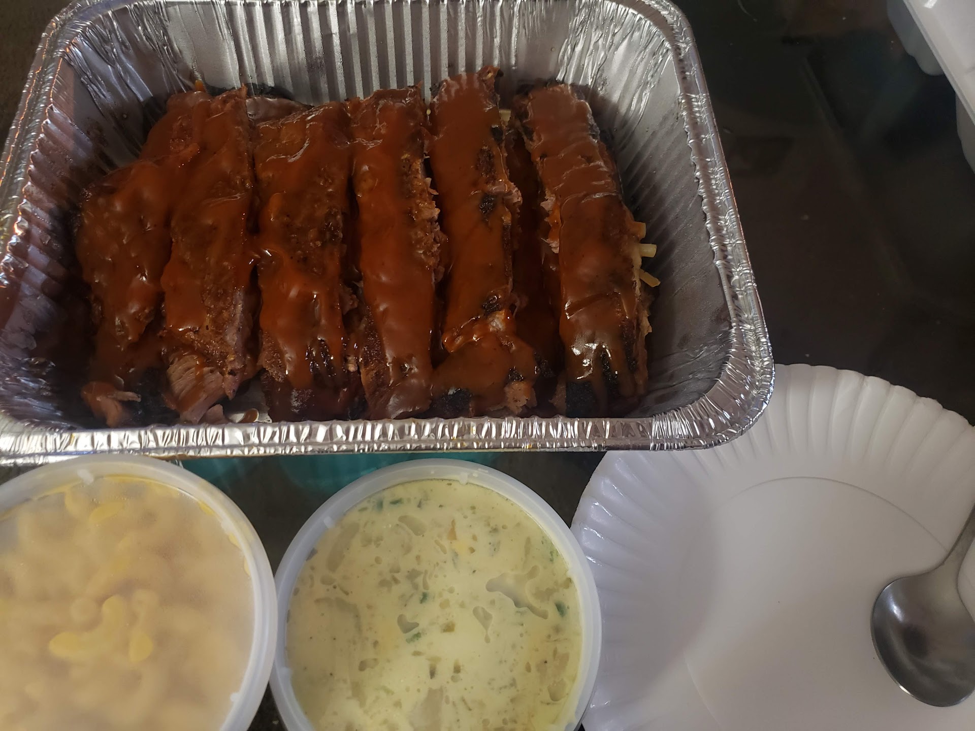 Read moreFirst timers, very pleased! Mild Barbecue Sauce was extremely good! Whole rack of Pork Ribs were fall off the bone, meat was cook to perfection! Dozen Chicken wings were decent, smoked/cooked, done right, tasty! Sides, Greenbeans were good, Mac N Cheese were cheesy but kinda bland, Sweet Candied Yams we're good, Sweet Baked Beans were very good, Dinner Rolls were good too (store bought King's Hawaiian, fresh)! Will highly recommend, will also be going back!