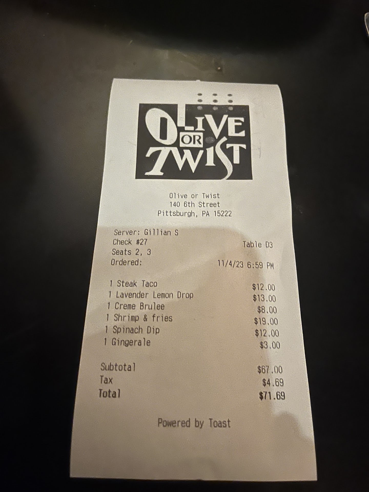 I have eaten and many fine dining and what we'll say regular dining a like and I don't think I ever had a manager as rude as Brad approach me or my family. If this is what Olive Or Twist thinks customer service is I hate to see where you'll be in a few years.