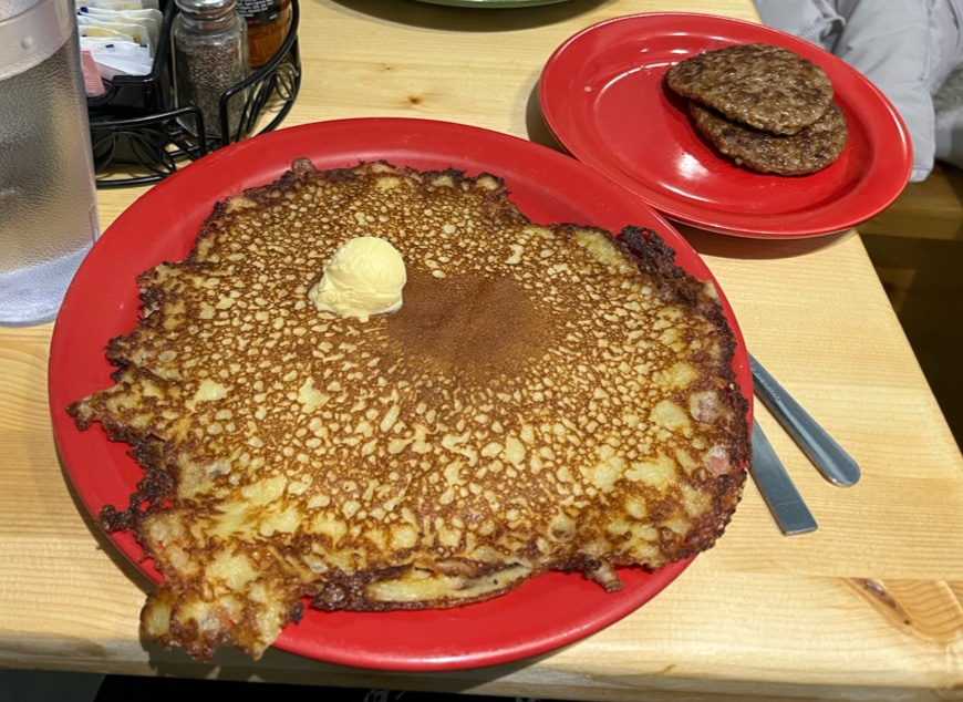 Read moreLet me start off by saying everyone raves about this place. I wanted to check it out with my family. We arrived with a line out the door. The entry way was blocked with customers waiting. The stairwell was blocked as well. We waited over 30 minutes for a table. It started to rain and everyone piled into the small entryway of the restaurant. It was jammed. There were customers arriving to pick up to go orders which added to the chaos. They don't use any sort of notification system to let you know your table is ready. We were seated and I had to use the restroom. I was frustrated the restrooms are located on the second floor. I saw no elevator. Customers were laying on the steps and blocking the stairway. I had to climb over people to get to the bathroom. I was praying there would not be an emergency as it would be mass chaos trying to exit this place from the second floor. I ordered the crepe style pancakes and took two bites; I was not a fan. My bacon had an overpowering smoked flavor, I didn't like it. The potatoes were fabulous! Definately recommend them. My family thought the food was basic, not worth the wait or price. The waitress was super kind and did an excellent job. The score is not a reflection of her or her service. Perhaps ADA, American with Disabilities, laws/guidelines do not apply to Walnut Street as i have seen multiple stores who don't follow ADA laws. No one with a wheelchair would be able to enter as they would block the entrance. Nor could they use the restrooms. I would like to...