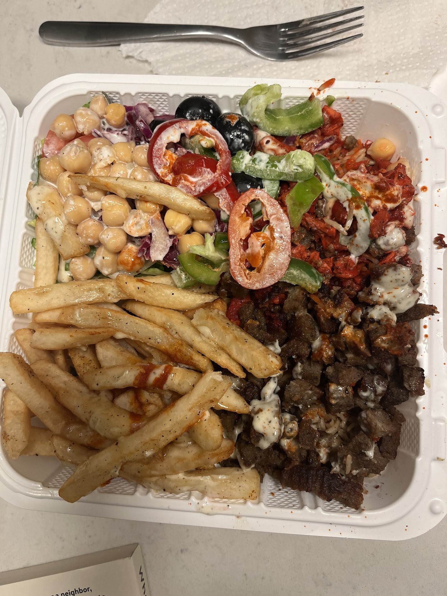 The food? Absolutely amazing. The marinated chicken was bursting with flavor, the gyros were delicious, and even the rice was perfectly seasoned and tasty. The fries were next-level, I added lots of white sauce and they turned soft, creamy, and addictive. The salad bar was fresh and well-stocked, and they definitely don’t hold back on portions.