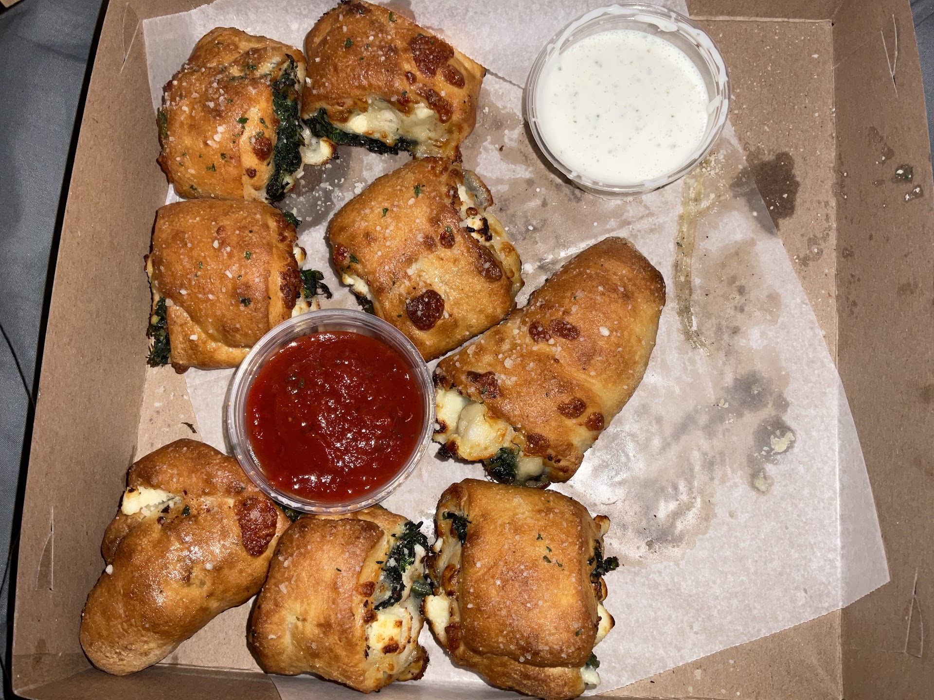When looking for some simple but reliable pizza or similar Italian American items, give Pizza Fiesta a try. They are quick and efficient with their services. Tonight, I ordered something simple: just the spinach and feta Fiesta rolls.