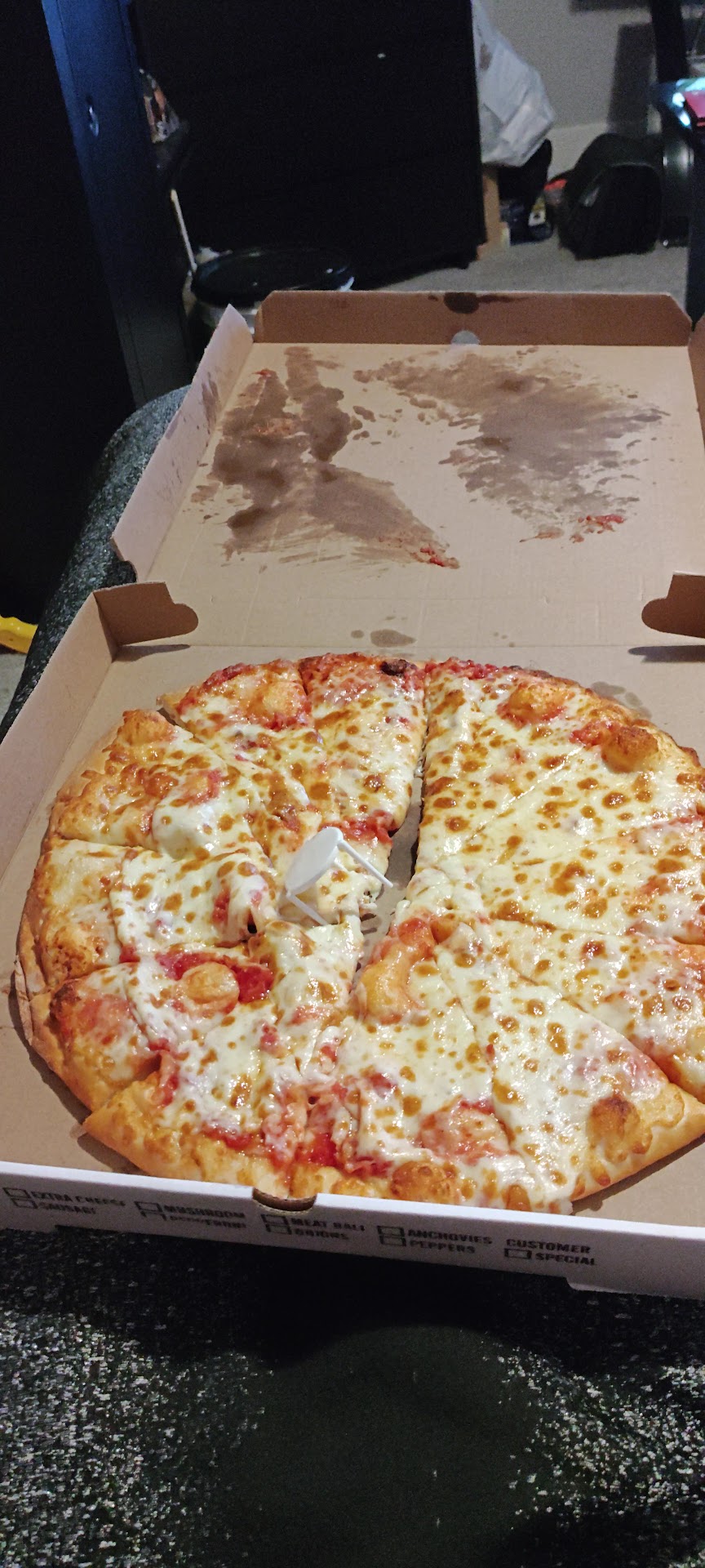 Read moreLet's start off with a gentleman I spoke to taking my order He was trying to take my order while apparently multitasking He was taking care of customers I had to repeat myself multiple times while paying Nothing like someone repeating your debit card number monotonously surrounded by other people...🥺 However he did get my order right Lightly baked large pizza with extra cheese One order of cheesy breadsticks, that he did state were a large size proportion