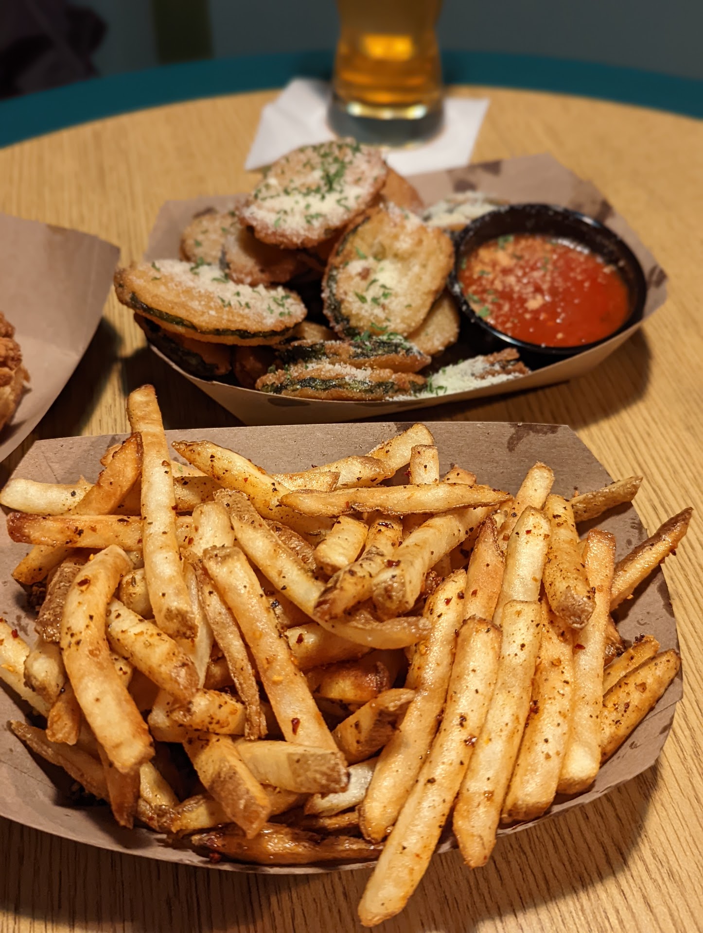 They were very busy but they had a great system, that allow us to belive that it was working. The food was really good, not drunk people food at all it had flavor!! The drinks were fun and creative. One of them was basically an adult arnold palmer but served in a huge juice carton. It was cute and fun.