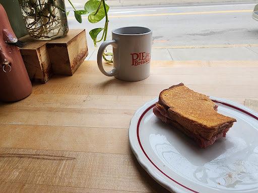 Read moreGreat toasted breakfast sandwich with piping hot coffee. I wish mustard was available, but maybe i could have simply asked for it. The pickle on my gruyere with ham is clutch. By the way, the coffee is rockin' some very sturdy but mild, naturally sweet flavors, a robust cup of mojo being served here!
