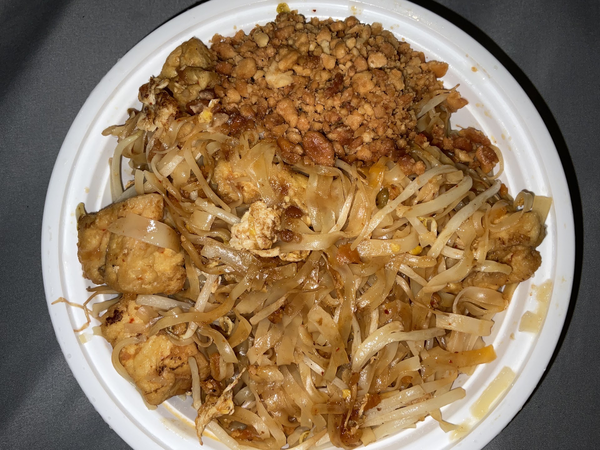 Wow, they give you a huge portion of noodles for pad Thai! And it's very tasty as well. I asked them for some extra sauce so it wouldn't be dry, and they did not disappoint. This was a satisfying amount of sauce. Also, they gave me lots of peanuts (much more than most places) and perfectly followed some of the other instructions for my order. And, they added in large chunks of fried tofu. It was decently well soaked in the sauce and pretty tasty. Decent amount of eggs and bean sprouts. Overall, quite good.