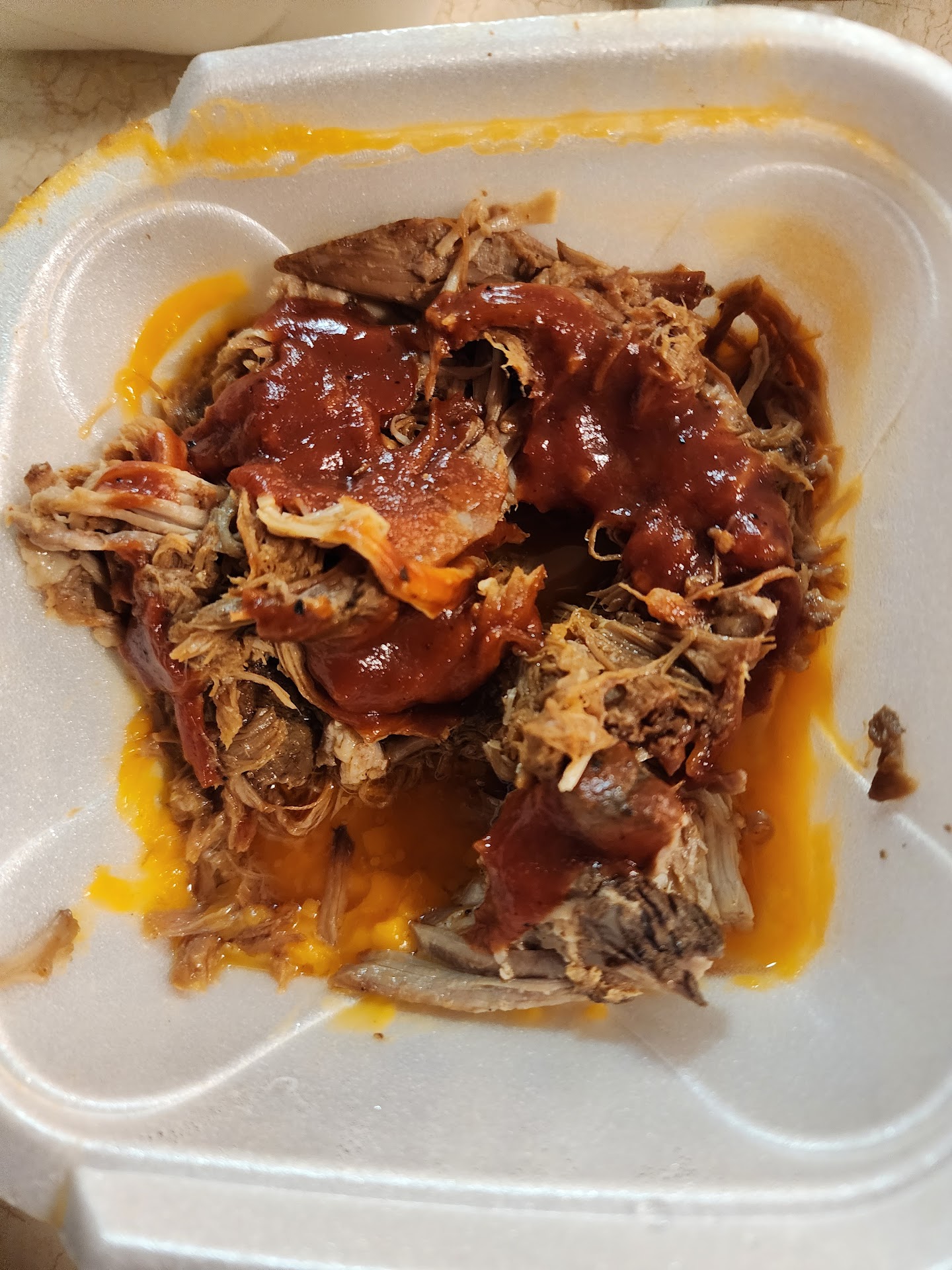 Read moreHighly disappointed in the quality. Not sure if smoked means that some smoke blew around the meat or what but the flavor is lacking. The ribs have minimal flavor and minimal meat(expected with st louis to some degree). The pulled pork has a texture of coming from a frozen bag, reheated and then some greasy sauce poured on it. The brisket is an atrocity that is chopped to hide the fact that its not actually smoked properly and again smothered in sauce. The sauce lacks any zing. It taste like a bottle of ketchup with some cracked pepper added in The catfish was undercooked with a doughy ring inside. The sauce was decent The greens were bland The mac and cheese was less enjoyable than my easy mac that I had for lunch