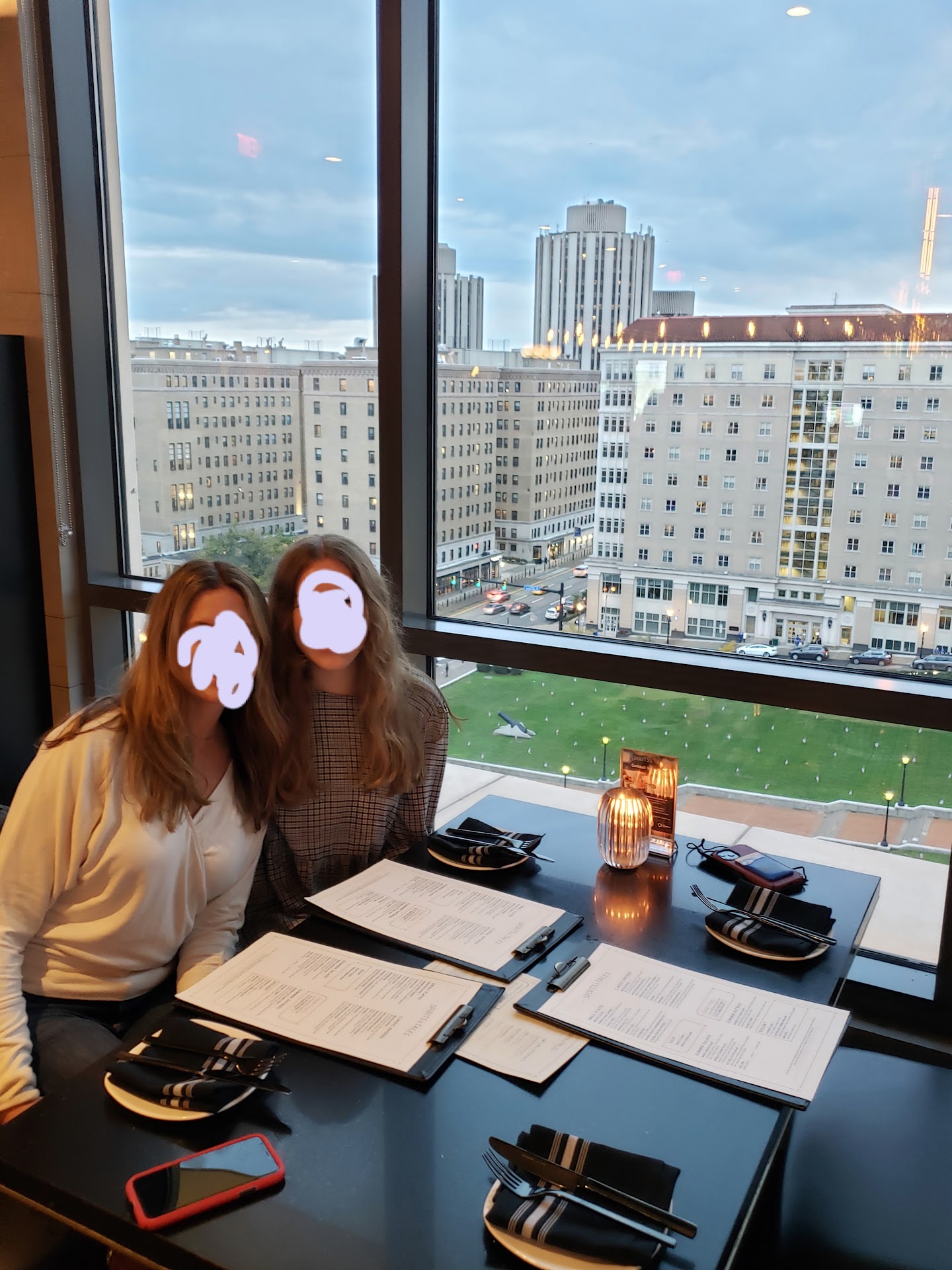We made a reservation (Open table app) a month out for Pitt parents weekend (Saturday) and the only times available were 6pm & 9pm. Fair enough. But the place was never more than half full for the 3 hours we sat. I'm guessing they hold back for Oaklander hotel guests? In any case we got a window table overlooking Soldier & Sailor field which was a very nice view as day faded into nighttime. For apps we ordered the Ricotta spread. Flavorless. I even stirred it hoping there were hidden ingredients. Had the mussel entree as an app. Large, tasty and fresh but full of sand. The accompanying frites were perfect and the butter garlic dip sauce was delicious. The main courses ordered were Branzino+ratatouile, mushroom ravioli, pork chop. Branzino was just half a fish. Past experience other places has been full fish fileted in half. Tasted fresh and good. Ratatouile was mostly carrots.Tortolini was substituted for ravioli as our server forewarned. So its obviously not made on site. Pretty flavorless, and the portion worked out to about two dollars per tortolini. Pork chop was double thick bone in. Crusting was very flavorful and cooked at medium was juicy inside. The harissa sauce was outragiously hot! Like wow! Couldnt use it. Charred broccolini was substituted by charred asparagus tips (surprise!) and pretty good. In summary I give them the benefit of the doubt that in these times the kitchen was facing challenges that night.We felt some portions were on the small side for the price, but inflation is here (Oct '21). Supply chain issues could also explain the substitutions but they were good alternatives. I got to thinking maybe the available dining times were an attempt to manage anticipated short staff? There were no issues with Wait staff and they were very good by the way! There is potential for an overall delicious dining experience. And the ambience with the cool view, high ceilings and good spacing between tables made a night of conversation catching up with our student enjoyable. My takeaway is that while pandemic/economic things are in flux you may be taking a chance, and not an...