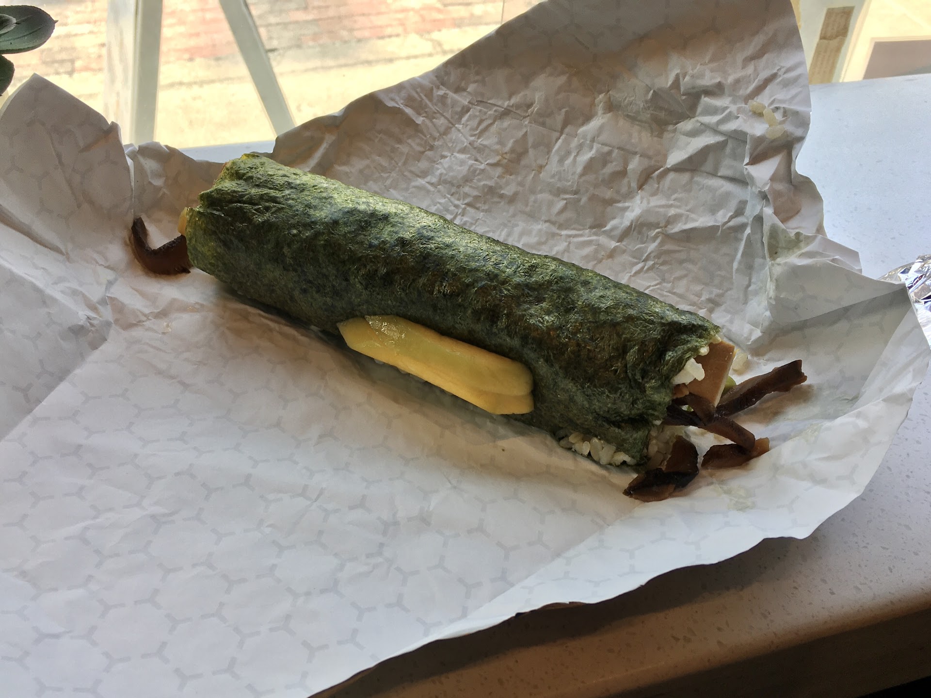 These monstrous diameter rolls are similar to the quality the average Joe would make with a home kit. The rolls aren’t advertised with the option of being served without seaweed, which isn’t my favorite; however the ingredients seem to be high quality. I was disappointed that wasabi wasn’t automatically included with each roll.