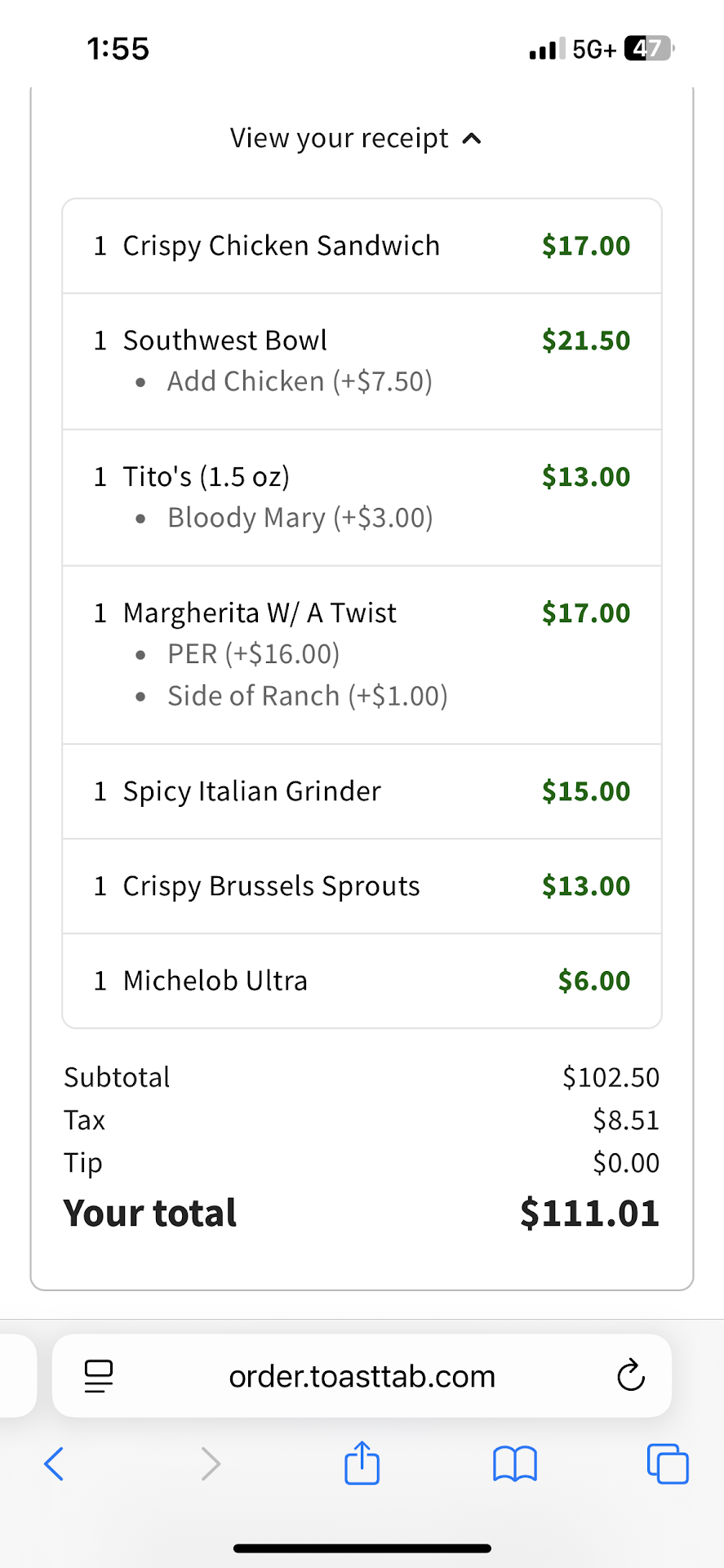 Read moreFood was fantastic! Service??? What service!!! Sat at a table upstairs, ordered food&drinks for 4. Waited 15 for drinks, (Bloody Mary & draft beer) could see them sitting there getting warm but since it was our 1st time there we werenât sure what to do so I went up to get them. The bar tender said please donât thatâs not how we do it. I said ok Iâm confusedâŚwe stood her at the bar for a solid 10 min being completely ignored before I flagged someone down and asked them how this works. They told be to scan the barcode on the table and order. I see people coming back to thier tables with drinks and we were just thirsty watching our beer get warm. My name was literally on the check so I took them and went back to the table. About 5 min later my husbands sandwich comes, delivered by someone with the worst attitude, practically threw the plate in the table without a word and walked away. 5 min later my daughters pizza gets delivered in the same way. As my son and I sit drooling waiting for our food to come the rude server is no where in sight. 15 min later my rice bowl comes again delivered with just as much distaste as the other 2 meal deliveries. Now total time waiting on sons food (after the 1st delivery ) is almost 30 min. All of us are done because we were starving and I need to get up and find someone to help me. Found them and they walked back and got his food that was most likely sitting under a heat lamp forgotten about. đ. All in all the food was good. Service was no existent. Will never go back. If you decide to go you will not all get your food/ drinks at the same time. And out lunch. Iâll was over $100!!! 1st time in my life I didnât leave a tip because for the life of me couldnât figure out what a $20 tip would be...