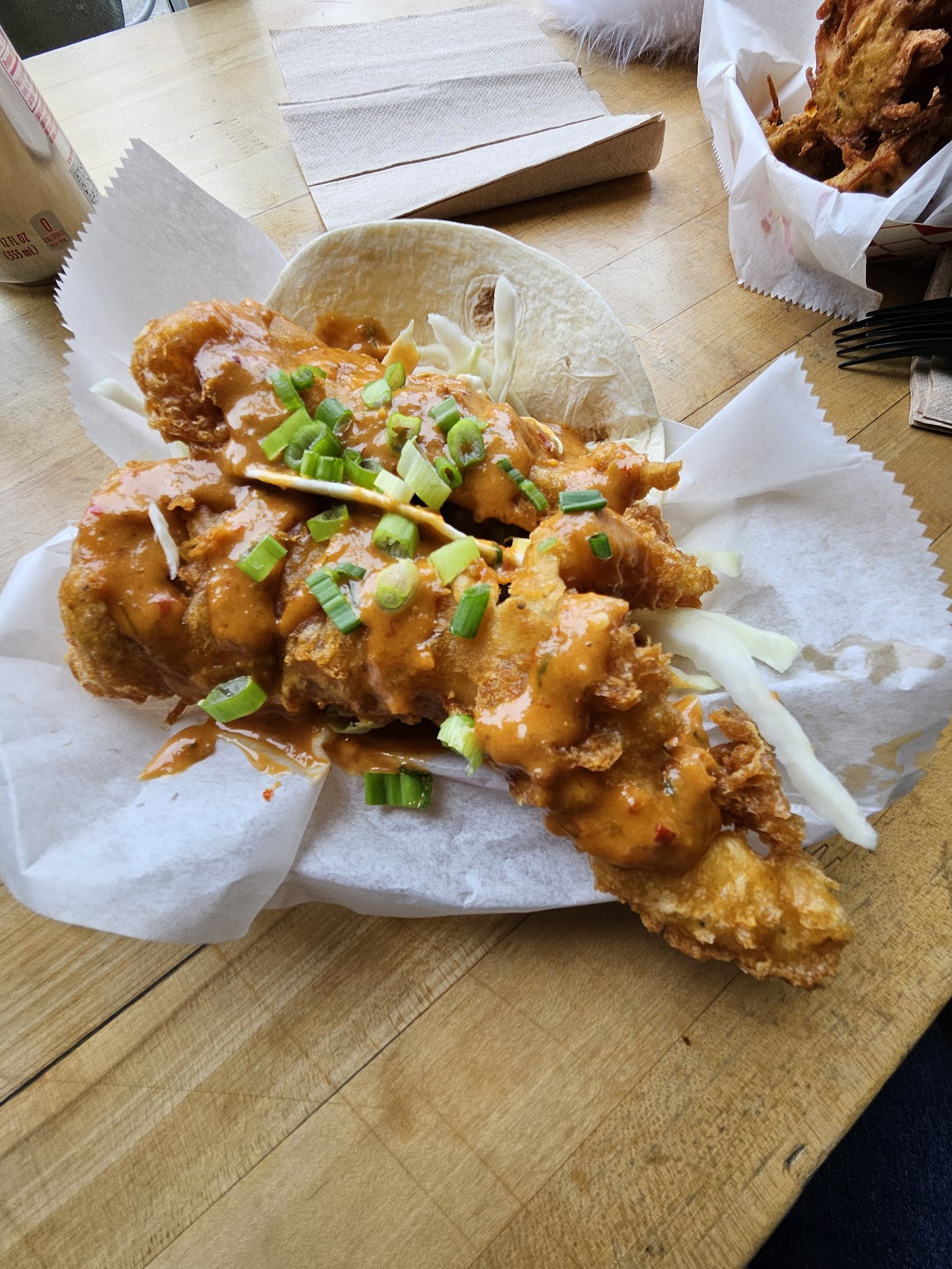 Read moreCame here for fish and chips. Enjoyed so much more! Fish was golden brown, crispy and delicious. The fries were actually worth eating (which IMHO they so rarely are). Also sampled the Thai Chili Chicken Tots. They were amazing! Big chunks of chicken; nice, slightly spicy sauce (and not an overabundance of it); the most delicious tater tots (a misnomer as they were more like deliciously fried potato pancake nuggets) ever! Would have ordered the delicious sounding ice cream sandwiches but were too full. It was a little hot eating eating on-site in the summer, but I understand some of the menu is also available nextdoor in a more sit-down environment, presumably with more vigorous A/C. There is a step to enter the building. When we arrived, a patron using a wheelchair was working with restaurant staff to place and pick up an order. So while the space may not have been accessible to him, the people operating the restaurant at least were. Casual environment with a small amount of seating and disposable utensils, etc. Eager to return AND to try the restaurant next door. When you want a fried food indulgence, do not pass up The...