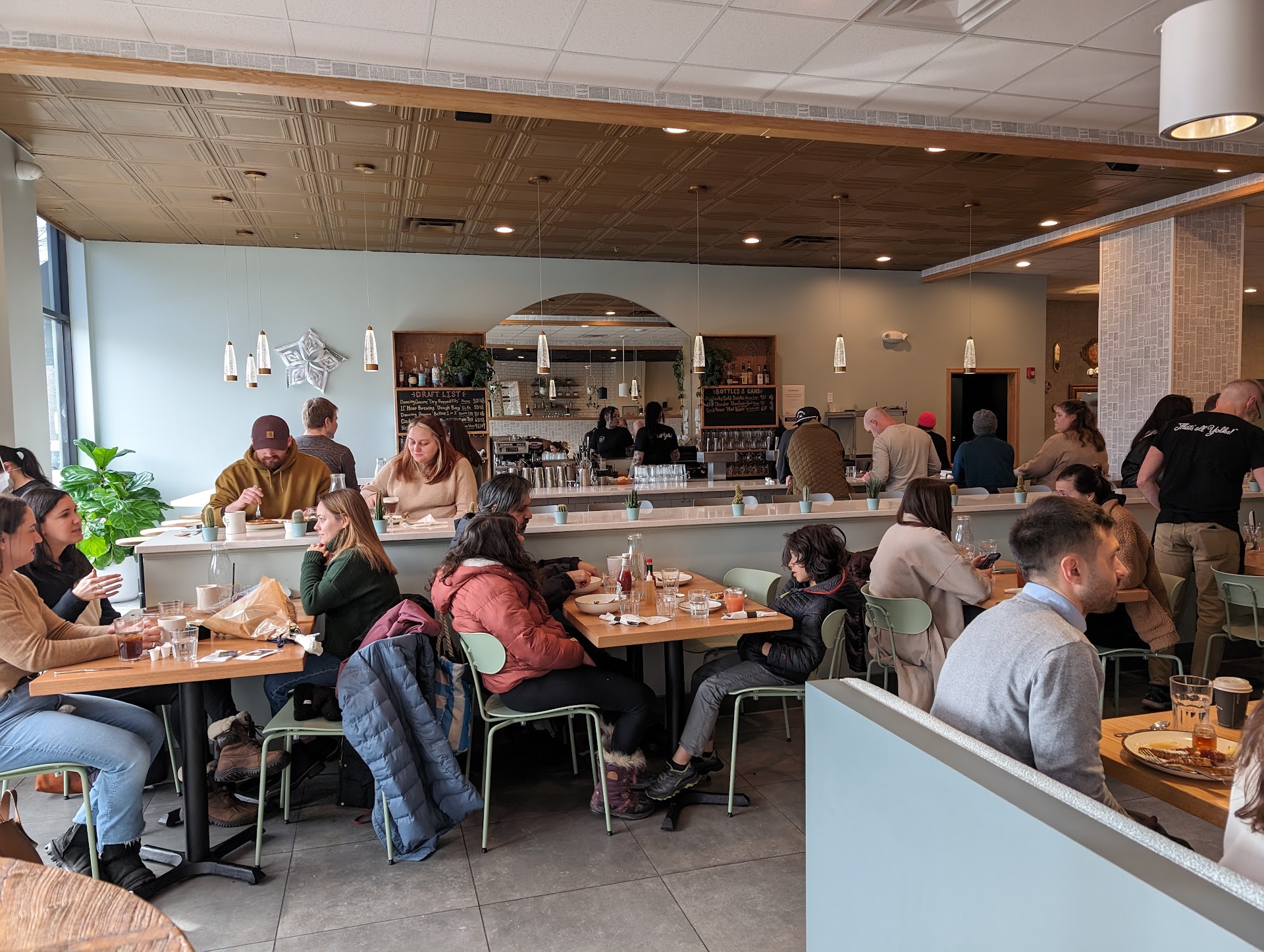 Read moreMy husband and I reserved a table for Sunday morning at 11:45 and it was packed almost to capacity. The countertop and bar seatings were pretty much all open though. We got there on time and, while we weren't expecting to be seated right away, we had to wait 15 minutes. There were many people waiting and I'm not sure if they give priority to the ones with reservations or not. It wasn't a big deal. I'd probably just show up and sit at the bar or counter tops if you don't mind these options. The host and servers were very nice and the service gets 5 stars. They were polite, professional, and quick. The food on the other hand was not up to par. The sandwich with 2 eggs and a couple of pieces of bacon was very small, no sides for $13. The shrimp and crab roll, for $18, was bigger, the butter roll was very good but the shrimp and crab salad didn't have much flavor. Again no side; I some greens with dressing could even be enough and definitely make the presentation a bit better. The cappuccino and Americano were very good. I think I had higher expectations because the Speckled egg is mentioned often on Internet as one of the best places for brunch but, while it was good and our experience was overall ok, I am not sure I can say that it was one of the best I've had. The location is great though and convenient and they have outdoor tables in summer where you can sit with your puppy so maybe we'll come back later in the year to enjoy the...