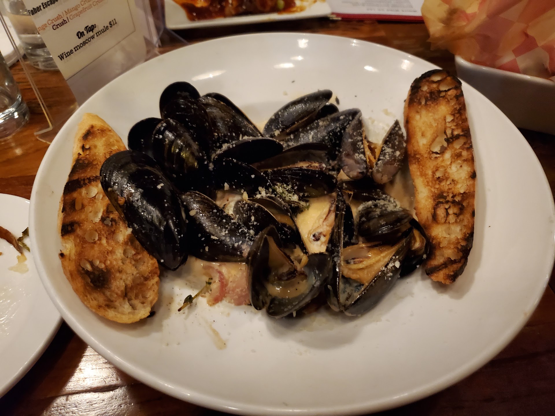 I'm a bit split on my opinion with the food. The white mussels were overall, not very good. They were chewy, tasted fishy, and I don't think they were washed properly as there was always something hard and crunchy inside every mussel. Now the dish also came with toasted slices of baguette. Dipping the bread in the white sauce was quite tasty. The sauce did have a lot of nearly raw red onions in it and I don't get that at all. Why aren't the onions cooked more? Anyway, the sauce was good, but definitely a big problem with the mussels. Overall, I was disappointed.