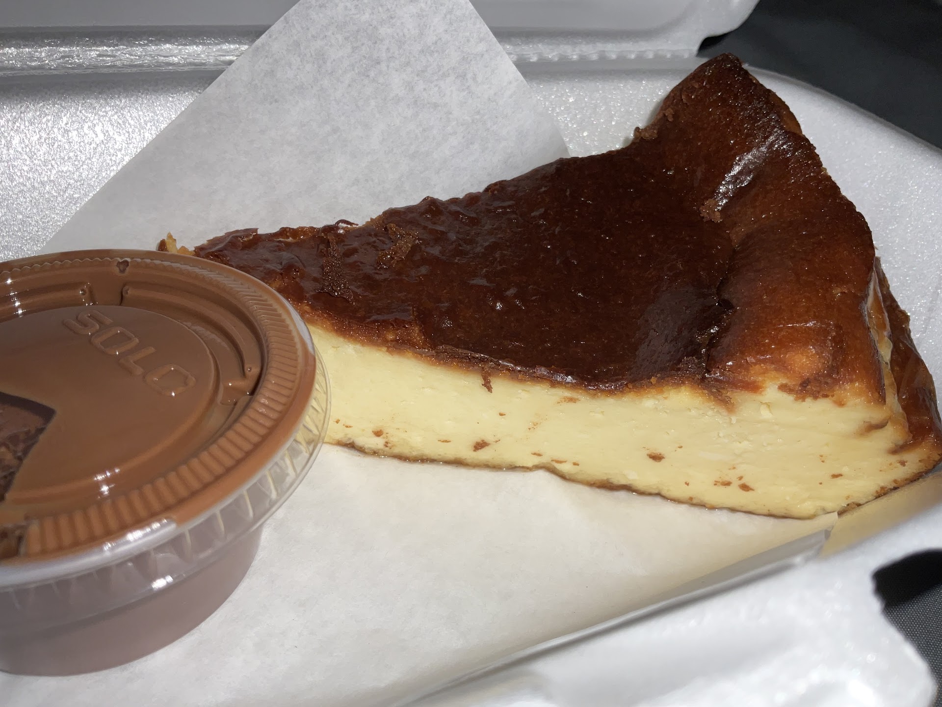 With your San Sebastián cake, you get a chance of sweet sauce topping. I decided to go with their Belgian milk chocolate. Wow, it was delicious! They give you a whole lot of sauce, too. Very creamy, and quite sweet.
