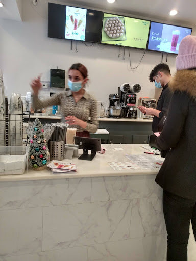 Read moreHonestly it was my first time here, so I was doing the self ordering. I love the additional Boba and bubbles you can get added so I doubled up. I didn't realize exactly how much that meant from my experience at other milk tea places. Well the girl who was making my drink was extremely unprofessional and was making fun of me and my drink with her coworkers instead of coming and explaining to me that it wouldn't all fit in the cup with my mango milk tea. I would've gladly avoided getting the extra if I was TOLD. Instead of hearing it while being made fun of. The entire time I could hear her making fun and the other coworkers just went along with it. They ended up putting all the extra toppings in an additional cup so I had 3 cups and macarons to carry. I wasn't even given a bag, or something to help carry everything. It just seemed like I was laughed at and left to figure it out. Honestly my mango milk tea wasn't anything exciting. I've had a lot better elsewhere. I got my mom a fruit yogurt one that she actually loved which was great. The macarons were good too. Oh, and to the ones who were making fun and laughing, I did enjoy my separate cup of toppings anyway that you kept making a scene about! 😊 Remember you're being looked at and watched regardless of what you think. I understand the staff is younger, but honestly where has kindness gone? I won't go here again...