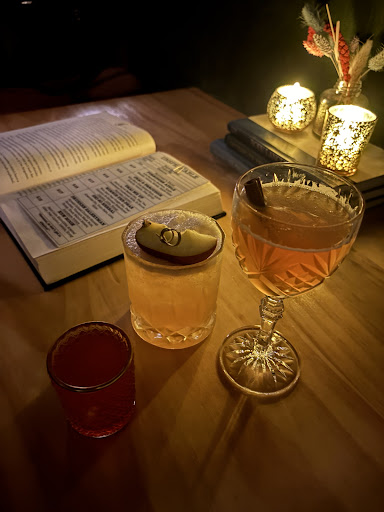 Truly unique - cafe by day, speakeasy by night. Tucked behind a bookcase, you will find a dimly lit but lively bar area with creative cocktails. Their various cocktail menus (at least 5 alcoholic and 1 low ABV or zero proof) are posted in used books that are scattered in various seating locations, giving off a library vibe. There is a cocktail lounge on the second floor with couches, cushioned lounge chairs, and a fireplace. Very cozy area if you have a larger group or just want a more intimate setting. Order at the bar and a server will deliver upstairs. The cocktails are unique and very smooth - you hardly taste the alcohol. It’s a little pricey for a drink ($15-$18+) but with the addition of fresh herbs, garnishes, hard-to-find ingredients, and syrups/liquors that are made in-house, the quality is definitely worth it! This is a step (or two) above any cocktail you could...