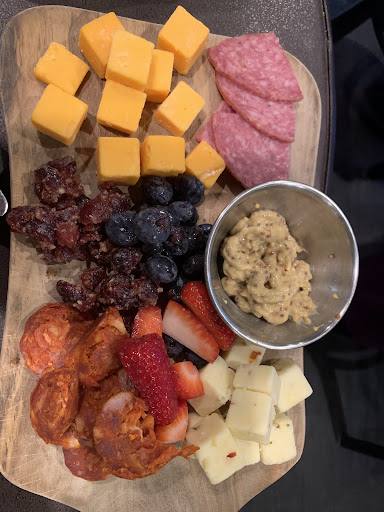 The shrimp tacos were delicious. Would definitely order again. The spinach was really good, garlicky, buttery, yummy. The Old Fashioned was good, much better when we ordered without soda. A downside is that the bar ran out of glassware, so subsequent rounds came out in plastic cups. The Caesar salad was ok, a bit heavy on the dressing, and really heavy on the plain croutons. The fries were over cooked and not good. The charcuterie board was a huge disappointment, dropping the review an entire star... there were 2 meats, one of which was delicious (maybe a chorizo or pepperoni variant), the other was acceptable (like a salami)... the chorizo looked like it had been sliced with a butter knife. There was a pile of sweet cranberries, a pile of old blueberries, and a pretty good strawberry. Finally, the cheese. There was a pile of yellow and a pile of pepper jack cubes. Straight from a bag. At $18 I expect something that is delicious and well curated, rather than (what looked like) leftovers from the hotel’s free...