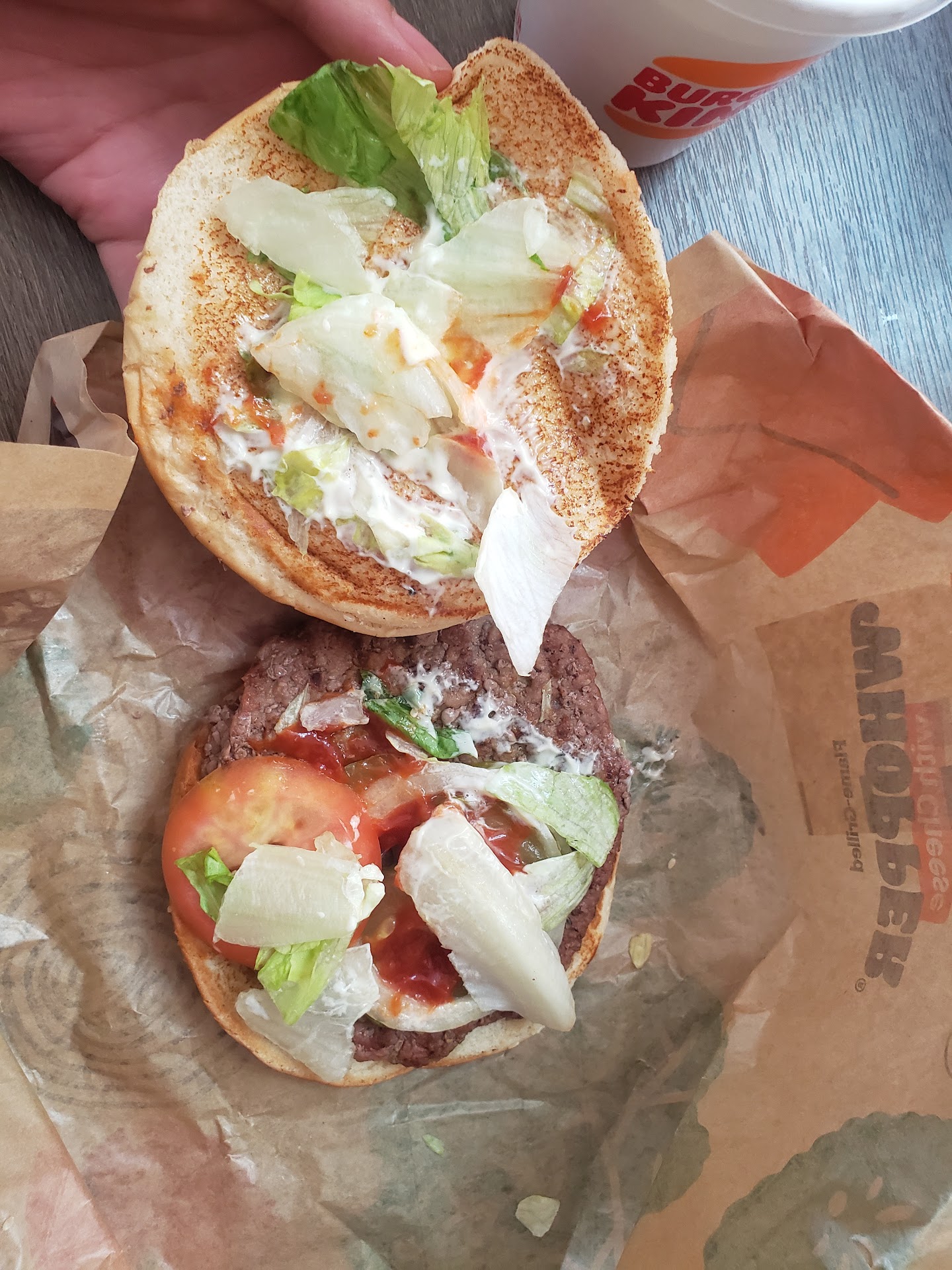 Read moreThe service here was awful! When we ordered using a coupon via the Burger King app, we read off what the deal included, but the cashier mistakenly added extra chicken nuggets. When we politely asked her to remove the extra chicken nuggets, she ardently defend herself and tried explaining that they were part of the deal when they weren't. The way she explained how she was correct and we were just mistaken when it clearly said 1 not 2, made it seem as if we were the ones who messed up, not her. After resolving to order the extra, when we received the food, we weren't immediately given cups for drinks and wouldn't receive then until we asked for them (and after waiting for a bit). In addition, our order was incorrect, from different burgers to different sauces and more. Not only was our order incorrect, the burgers had little to no toppings (we ordered normal everything, but received missing ingredients. Also FYI, the picture included was overall the best we received in terms of ingredients added). I would definitely not recommend this joint and hope that this review can warn others...
