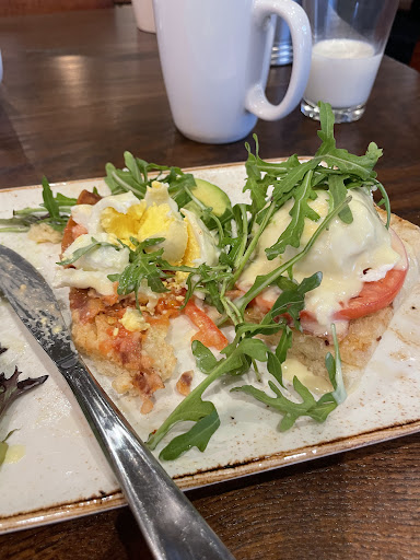 Read moreThis was our first visit. It was worth checking out, but honestly a little disappointing. We spent about $80 for 3 drinks, 3 entrees, and a side of potatoes. The drinks were pretty good, although the salted caramel coffee drink was gritty. My husband liked his cinnamon cocktail and ordered a second. The lavender blueberry French toast was fun and flavorful, if a bit dry. My husband ordered a B.E.C. sandwich and liked it. I thought that the havarti roast beef sandwich was very good and would order it again. I went with the mixed greens for my side (as opposed to a cup of soup), and was somewhat surprised to receive exactly that: simply a pile of arugula tossed in oily vinaigrette... seemed like kind of a waste, and for the price of the dishes, kind of a cheat. We were there for 30-40 minutes. I wish our server had pre-bussed our table, since we started to get a little crowded after awhile, but otherwise he did a fine job taking care of us. Which is why I was surprised to see him leaving for the day right as another server was dropping off our check. I even asked him if he wanted to wait a minute so we could cash out/tip out with him, which he declined. The host confirmed that servers keep their own sections at the restaurant, meaning someone who didn't interact with us at all during our meal (she handed us the check and our to-go boxes... I think someone else entirely bussed our table) collected the tip intended for our original server. That didn't sit right with me. Overall, the experience was ok. I think this place has potential, but we left feeling a...