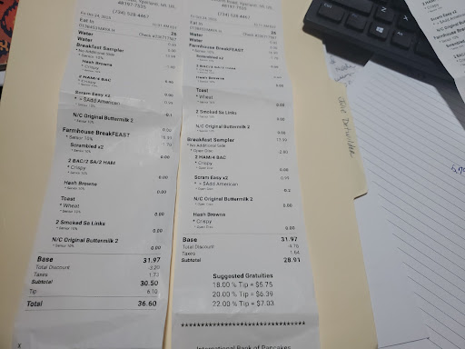 First time here. Placed an order for pickup online. 2/22 around 9-10am there was a latin guy at the front counter. I ordered a omeletter and pancakes. I asked if i can some of the scoop butter. Instead, he gave me 2 packs of the packaged butter. Did not press it. upon going to the car I realized that there was only 1 butter and 1 syrup in the bag. while in the parking lot i buttered my pancakes, and realized I needed 3 more butters and 2 more syrups. I went back in to ask him for that, and he politely stated "I thought I just gave you some extra butter, wasnt there some in the bag?" I replied yes, but it wasnt enough. he then proceeded to inform me that a stack of 3 pancakes comes with one butter, and one syrup, and any additional is extra. after not moving he saw my attitude begin to show in my face and said "I will give them to you this time, but next time there will be an additional charge" I asked for extra butter and syrup? he said yes. I asked how much? he said you dont have to worry about it this time. I said so I can know for next time. He said "like... a dollar". I then returned to the car to finish buttering my lukewarm pancakes where the butter I put on it never even melted in the first place because the pancakes were just about room temperature. 1.)he was polite the whole time but it was that kind of polite that was like "im going to be nasty but say it politely so nobody can say I did anything wrong". 2.) i dont know if that 1 syrup 1 butter thing is a thing, but maybe you all should let your employees know what is the maximum extra a customer can request. I would hate for anyone else to be embarrassed like how I was. This interaction made me personally feel greedy and embarrased. I hate asking for special requests becuase I dont want to be "that guy", but he made me into "that guy" today. I've am now continuing the rest of my day feeling fat, greedy, and ungrateful, when all i really wanted was 3 hot buttery ihop pancakes. I cried. The colorado omlette was...