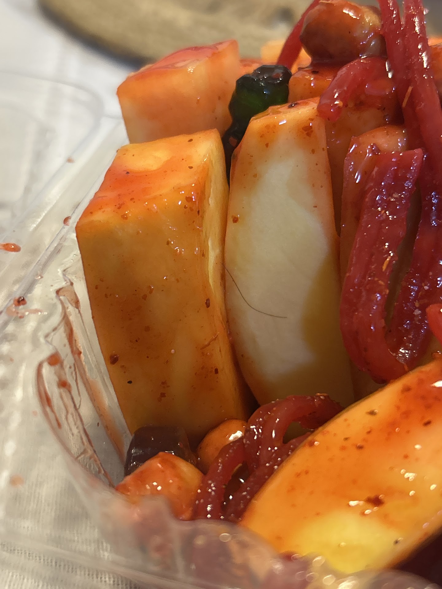 When she brought out the chicken and asada tacos I ordered, it came with two fresh cucumbers and lots of hot sauce options. It was sooo tasty, not dry, and very authentic!!