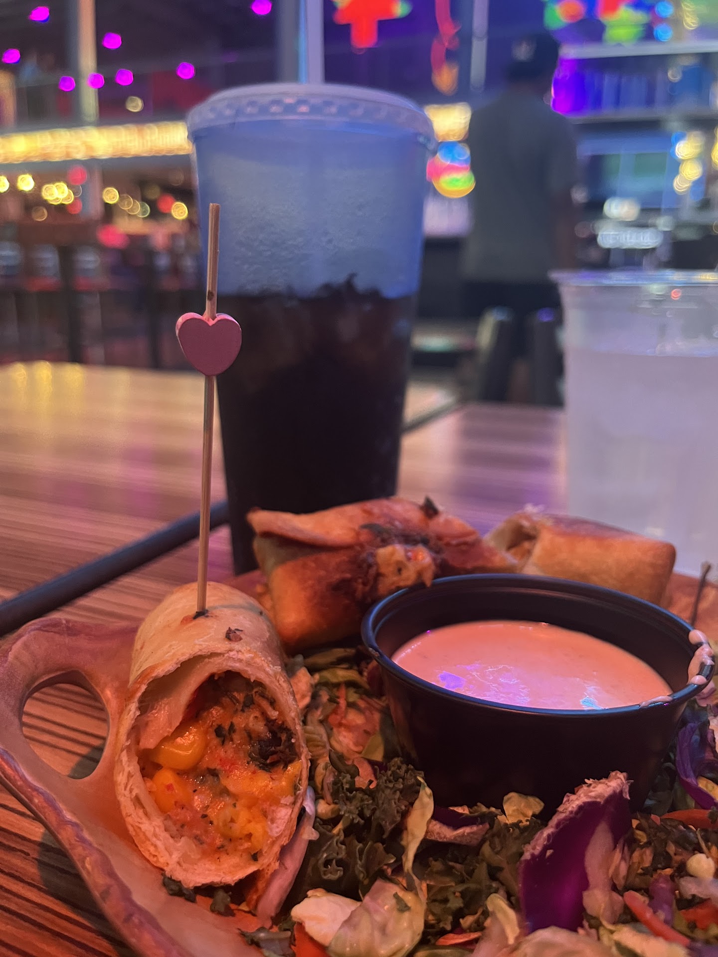 We didn’t know a robot would bring our food out to us, so that was a nice surprise. The food was also great. I got the southwest egg rolls ( the cute heart stick was a great touch) the five cheese cheesy bread, and my husband got the fish tacos. We will definitely...
