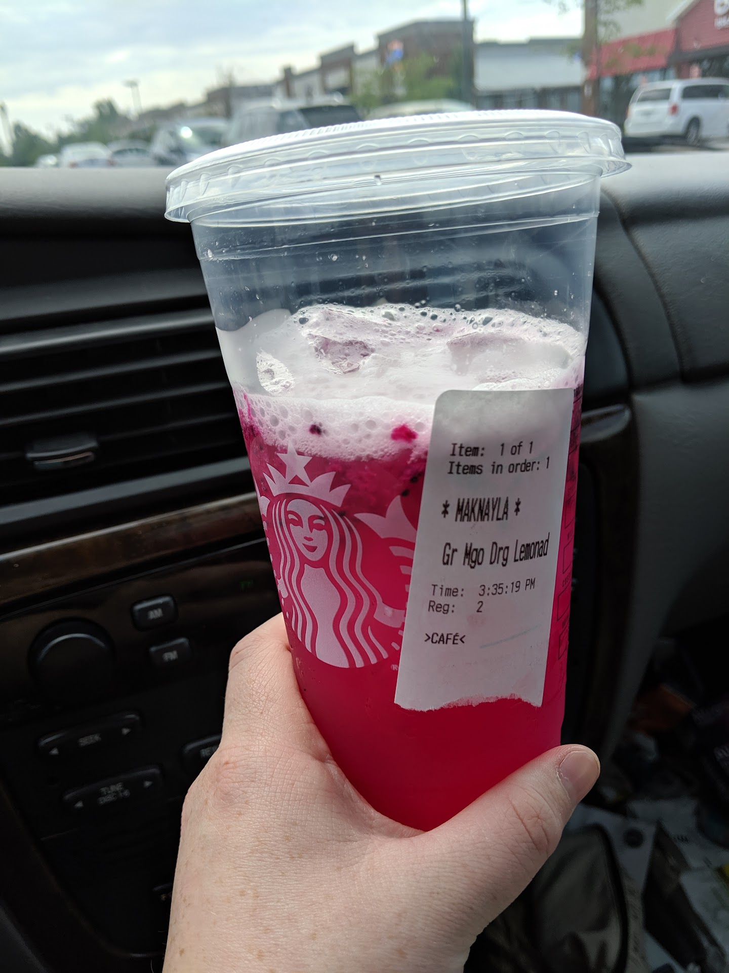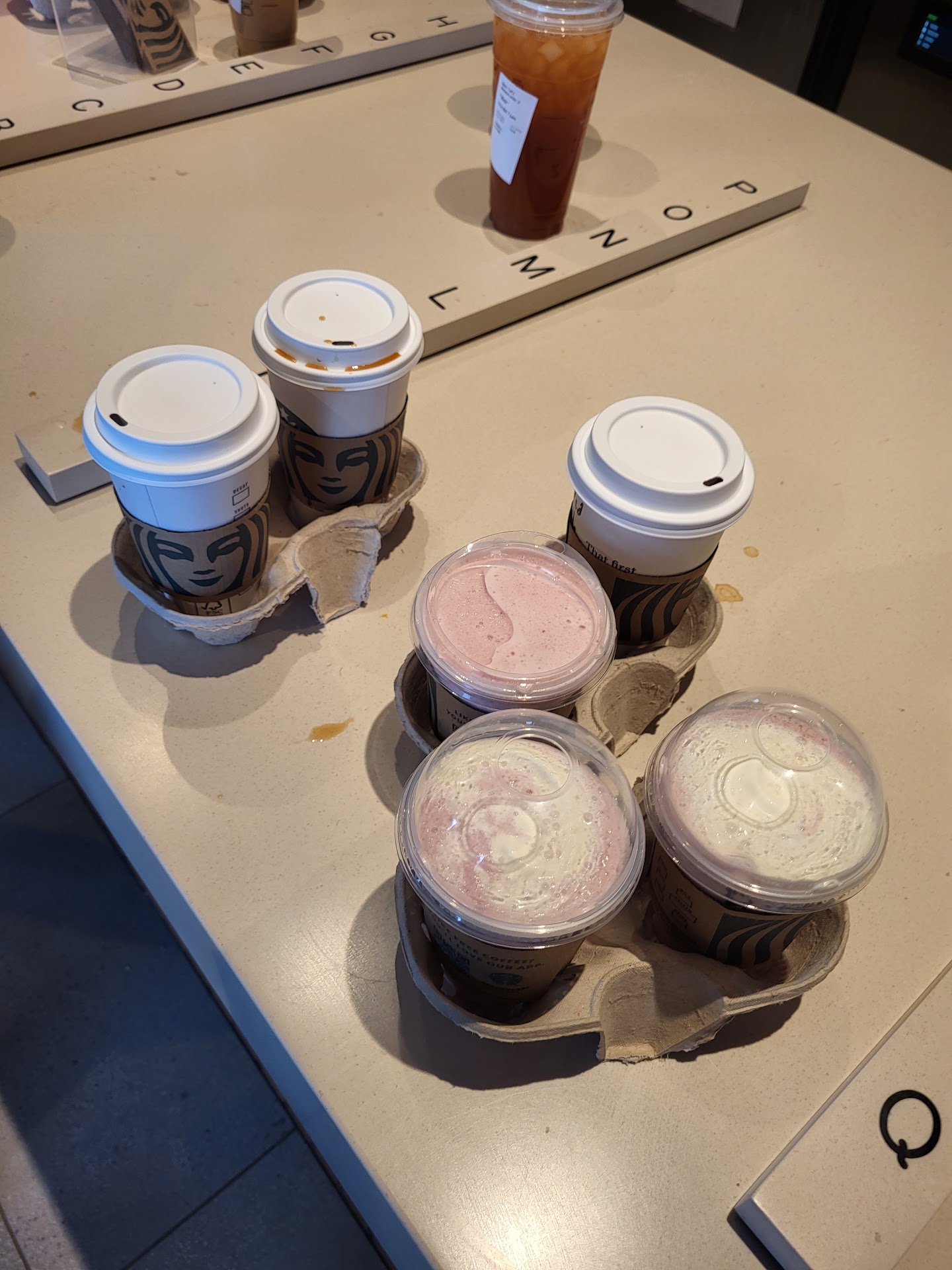 Read moreI'm quite disappointed in this particular Starbucks location. I ordered a Mango Dragonfruit Lemonade, a brownie, and one of their Protein Boxes. I received the box and the brownie at the counter, declining the option to have my brownie heated. I waited for about 3 minutes to receive my drink along side a few other patrons. The first lady who had received her beverage picked it up high enough that I could see it. It looked like one third of her beverage was missing. I assumed she might have asked for her drink without whip cream. Two other patrons received their beverages the same way each one looking at the drink for a minute confused and walking away. Then I received mine and the same situation occured. The problem with my drink is that there is no whip cream. I simply ordered the largest size they offer. (Those words exactly, since I don't go to Starbucks often I'm not completely familiar with their sizes.) In any case, I should never be skimped for one third of my beverage! That's unacceptable and lazy. I'm assuming they had a few orders and we're trying to quickly get them out of the way, but devaluing quality over being timely is never a way to run a business! I'm in the guest service industry and I understand being overwhelmed by volumes of patrons, but that does not mean we decrease the value of our product. That a fantastic way to lose patrons. I would recommend visiting any of their sister locations instead. I've never been taken advantage of at the other...