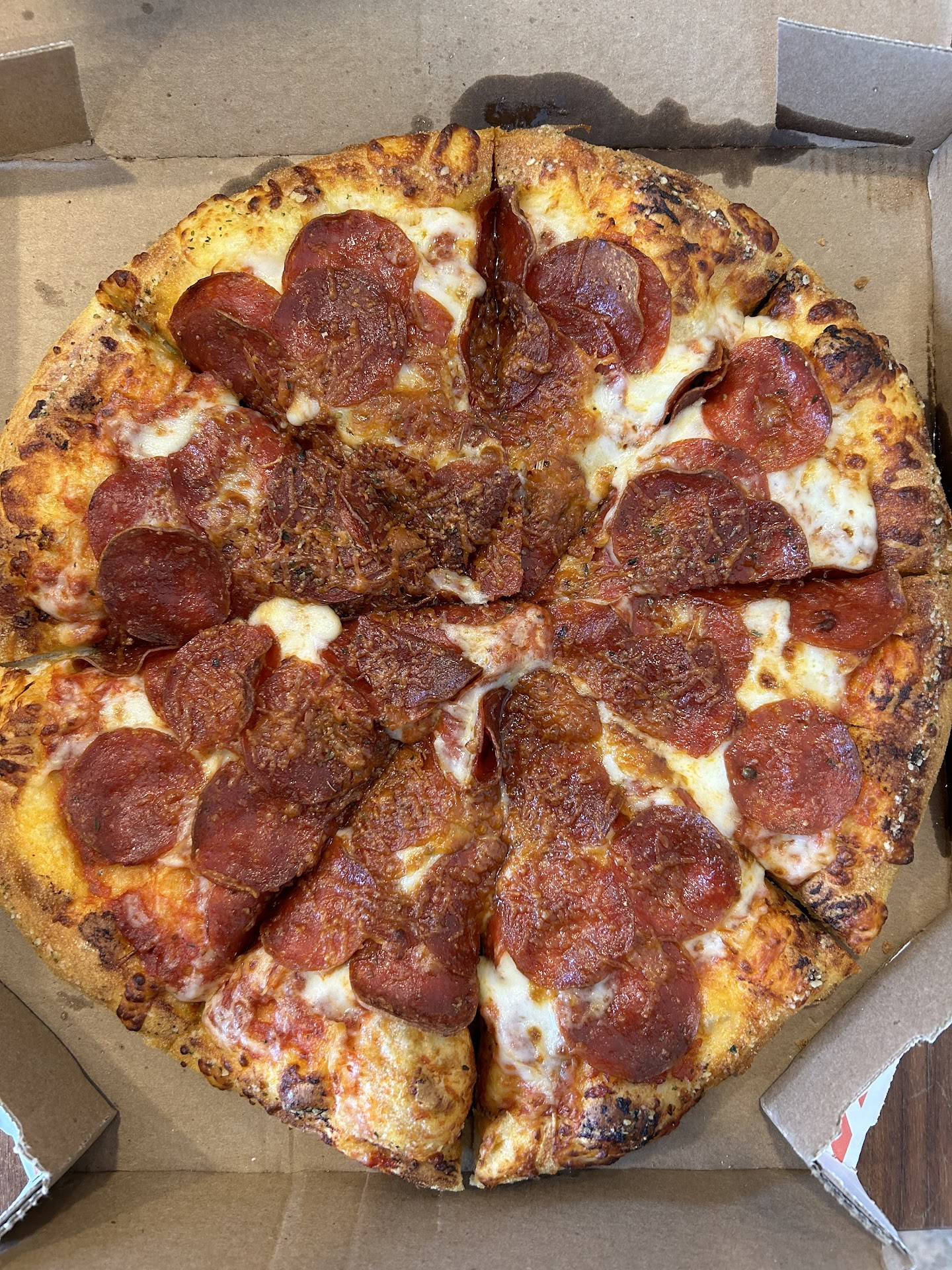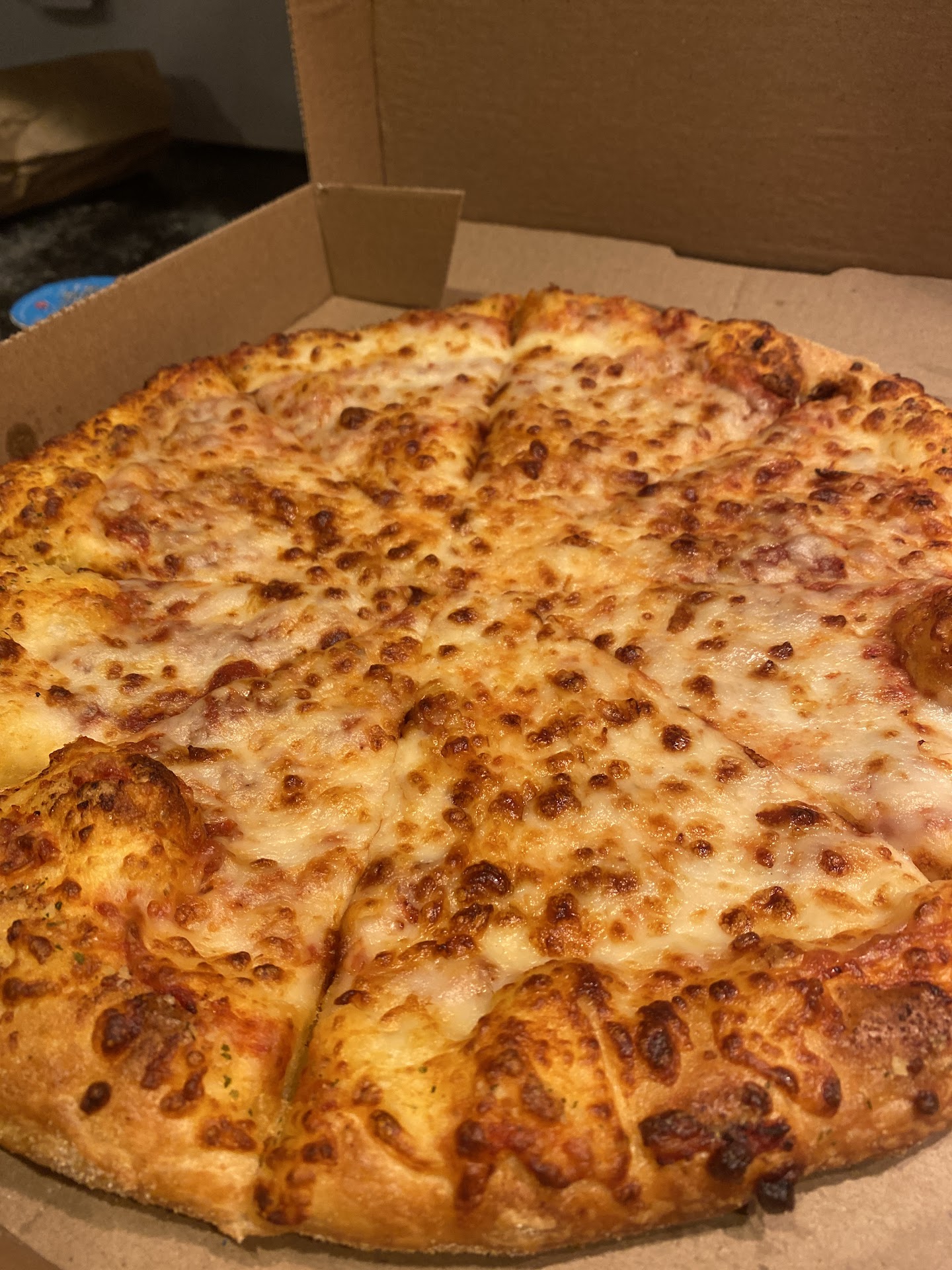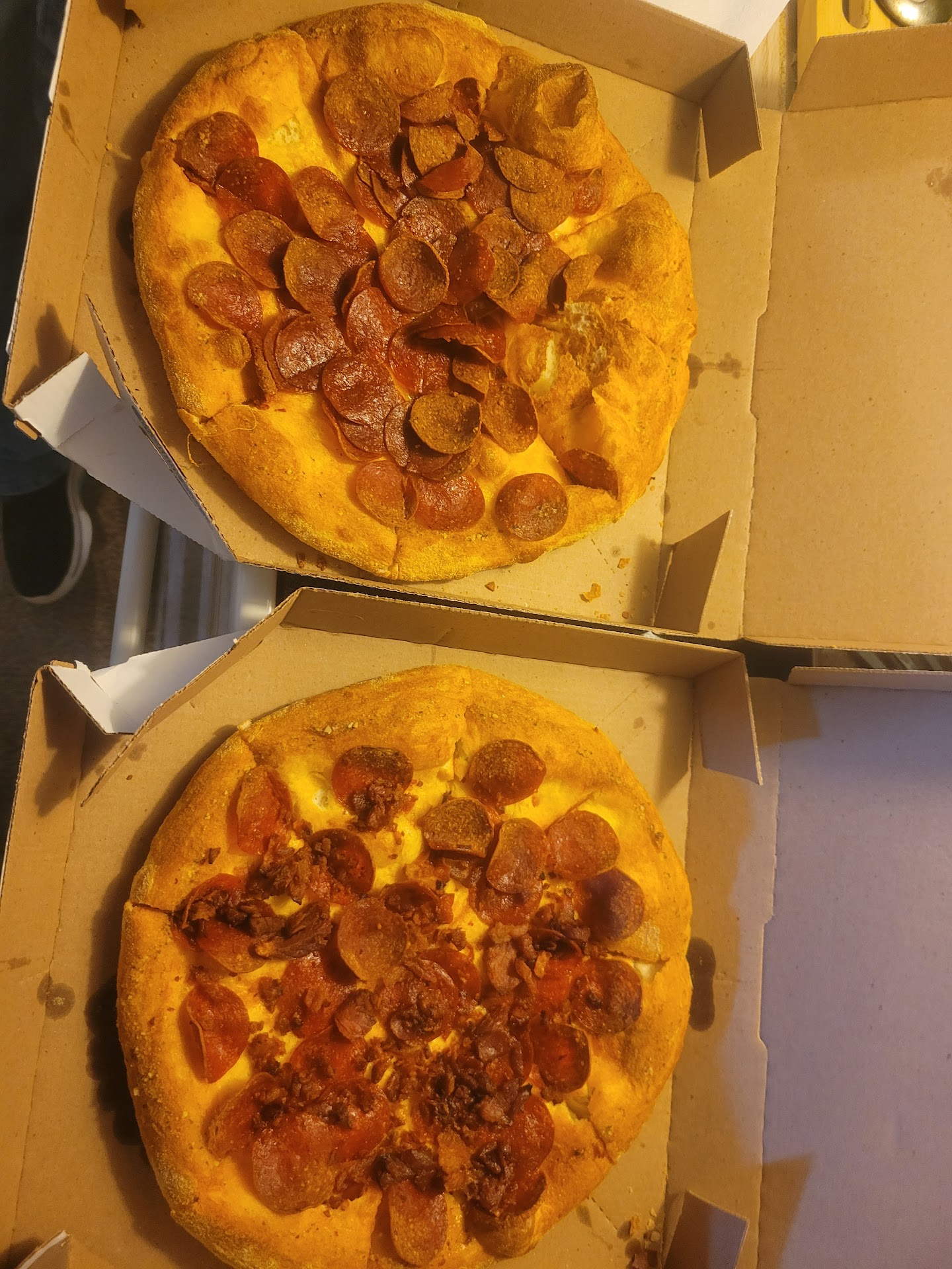 Read moreThis dominos is flipping AWESOME. We ALWAYS finish the entire pizza every single time. The parm bread bites are fluffy little bursts of paradise on your taste buds and they stay soft for when you want some later! If you haven’t tried the cookie brownie you aare seriously missing out, it’s HUGE, SOFT WARM AND ABSOLUTELY DELECTABLE. I mean honestly idk how they are able to sell it at such an insanely low price…ALL of the food for that matter. Oh and if you want the thinnest crust??? See photos below! So. Frickin. Thin. It’s awesome. Just be aware: A delivery comes WAY FASTER than they say it will tho (kinda awesome when you’re starving) so be ready to eat when you’re ordering because you don’t have long at all till it arrives! Like MAYBE half an hour:)