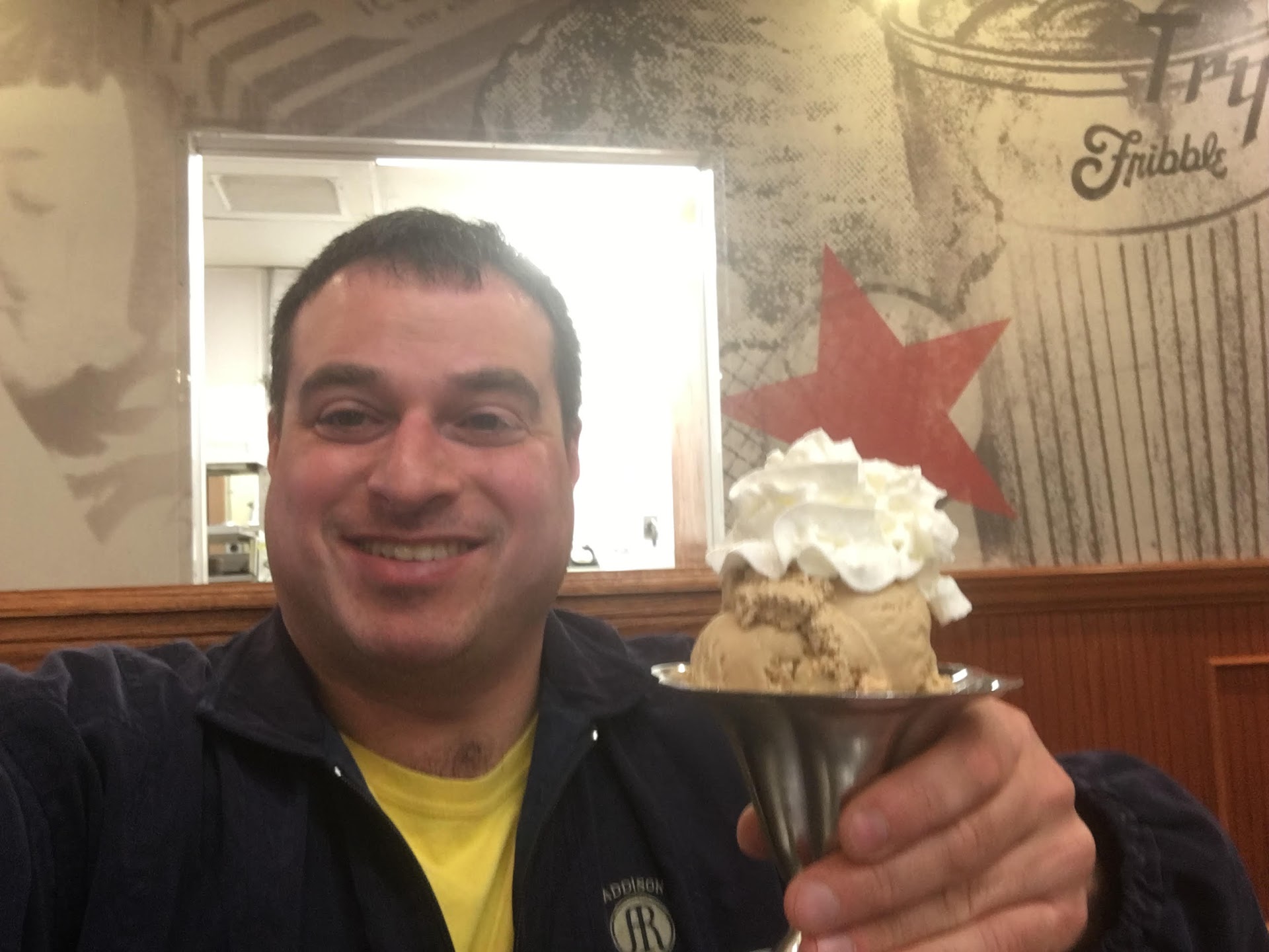 It is still raining relentlessly outside and this is even mixing with snow. (REALLY?! It is April 16th already and this is freakishly unfair. Spring should be arrested for emotional abuse and gaslighting by giving us nearly-seventy degree days this past week only to violently yank it away and return to a wintry extreme.) But now I am not frustrated about something that I can't and shan't control. I am just very much content here at this magical Friendly's. After forty years of consistent change, there is one thing still standing that outlasted bankruptcies of other chains in addition to unnecessary changes to save a dime that seem more like fixing something that was working perfectly fine as it was. I am now oblivious to the mess outside and shall have the strength to face it while driving