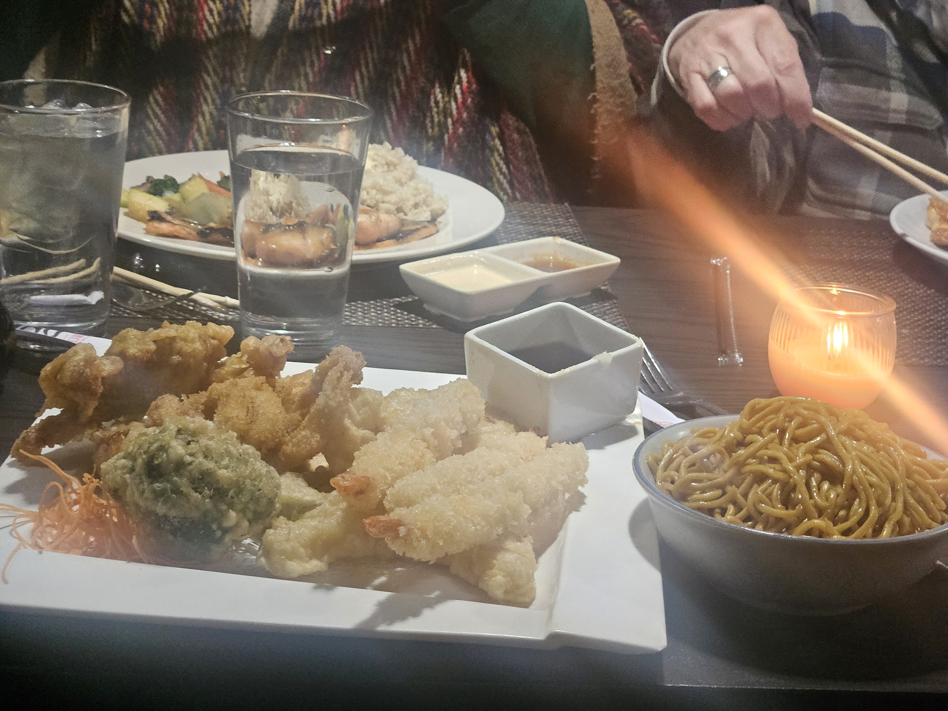 This restaurant fully deserves more than three stars for the quality and variety of the food and the festive decor. The hibachi meats are nicely prepared, the sushi is fresh, side dishes (fried rice, etc.) have an authentic traditional Chinese "comfort food" flavor, and the portions of most dishes seem plentiful. The enclosed patio is a fun place to eat, with plastic plants and lively music that give it the feel of a Disney themed restaurant. We very much enjoyed our meal, and the service was friendly and efficient.