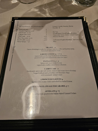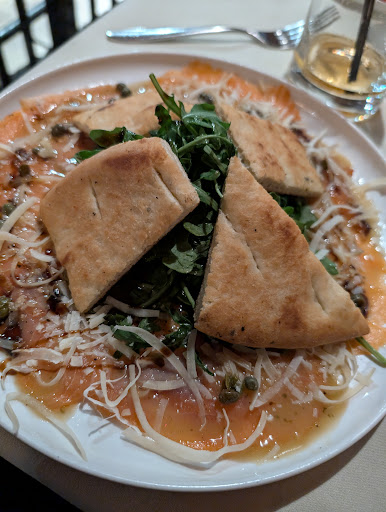 We had the burrata to start. It was fine - though more bread would have been welcome. My daughter had the Seared Scallops: Served on risotto which was fine though not inspired, the scallops were tough save for one. My wife had the Salchi Mushroom Lasagne: Also fine. Though, again, the dish lacked the finesse of a true Italian classic. I had the Ink Gamberetti: While featured in other reviews, I would not recommend it. First, unlike traditional squid ink pasta dishes, only the pasta had squid ink in it. The sauce was the chef’s puttanesca, from what I could tell. That’s fine. But a dish that should taste of the sea decidedly did not. And while the shrimp were plump, well-cooked, and seasoned nicely, the calamari was dubious. Large, bland rings with a membrane still in place, they were not fit to be sold. They lacked the flavor and texture of squid and had to have been ersatz. In any case, chef should not include calamari if it is not going to be quality