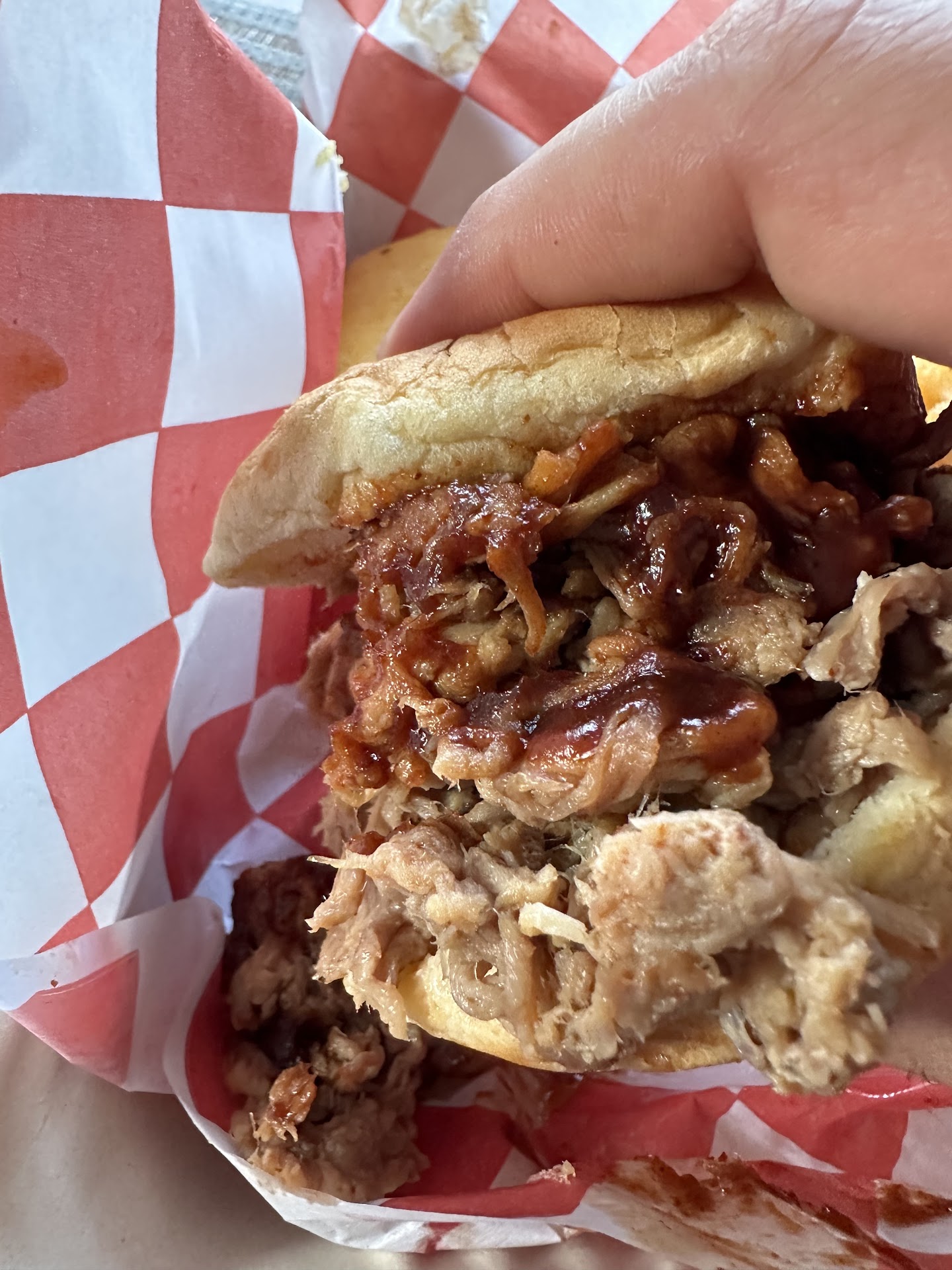 Read moreWe came from out of town and did our due research and came here for BBQ. SO glad we stopped in. The food was absolutely delicious!! We ordered the chicken and the pulled pork, with Mac and cheese and sweet potatoes and corn bread. Their own BBQ sauce is unbelievable! I got the mild and my partner got the medium, both were incredible! Highly recommend. Both meats were so juicy, and just delicious. The corn bread came with the meal, and I wish I had ordered extras, it was so good! The sweet potato side was sweet, but that’s how I like it. The owners were absolutely lovely, kind, and warm, and we got the chance to chat with them for a bit, and had some good laughs. WELL worth the drive, not only for the food, but also for the wonderful people who run this...