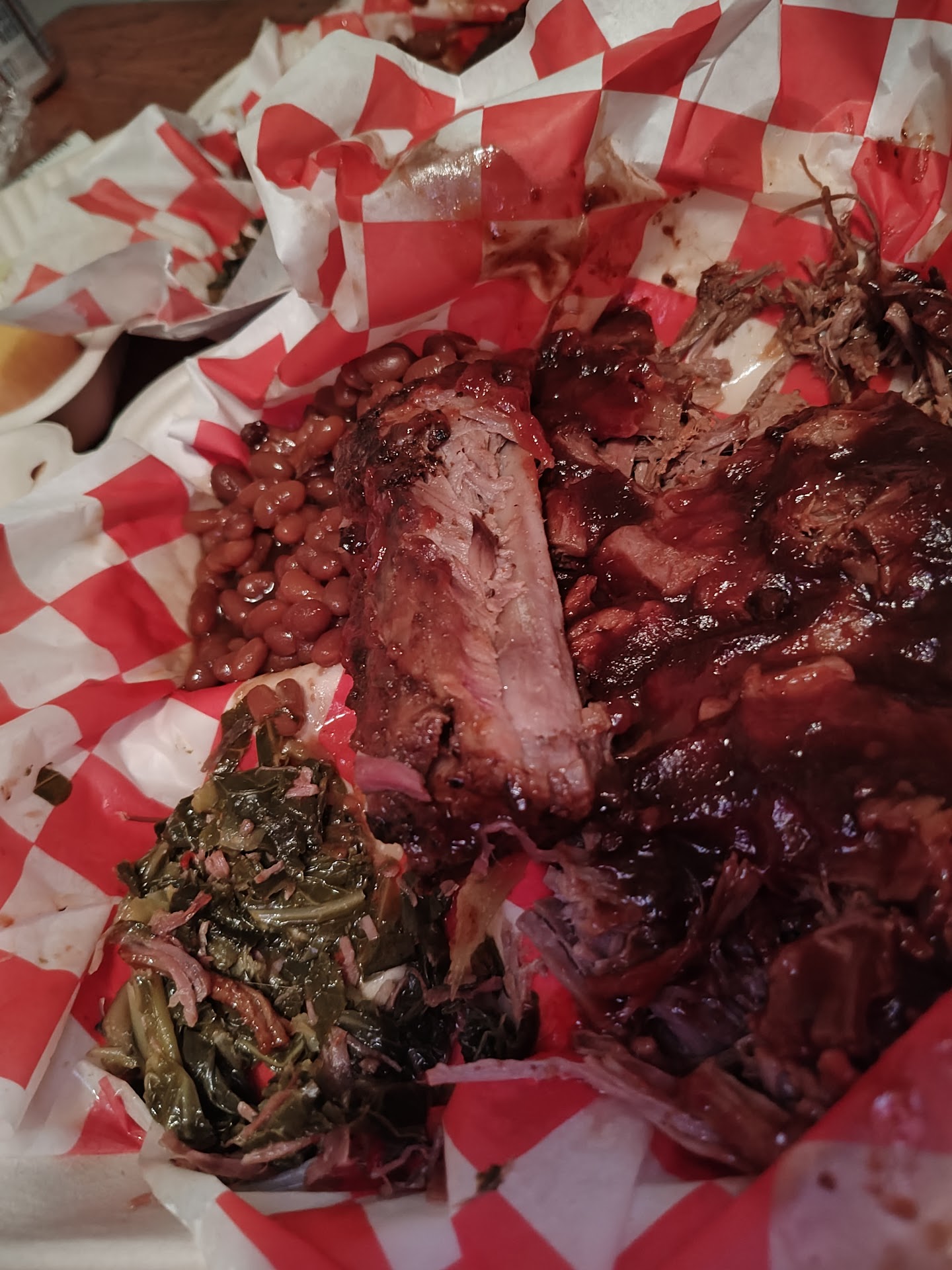 Read moreThe brisket was sold out so we went with the pork ribs. Large comes with two sides so we got cool beans salad and collard greens. The maple glazed sweet potatoes and baked beans were sold out but I am positive they are tasty. We split the meal between the two of us and we were satisfied. The ribs were very tender. We got the medium sauce and it was not overly smoky or hot. Perfect amount of kick. Collards were flavorful without being greasy or heavily salted. There were no green beans in the salad. It had black beans, kidney beans and possibly great northern beans. Both sides nicely complimented the ribs nicely. There are 2 small tables but takeout is probably the way to go. Also the tiny building is in a residential neighborhood so keep your eyes open for the sign in grass in front announcing the are open. Definitely worth tracking down...