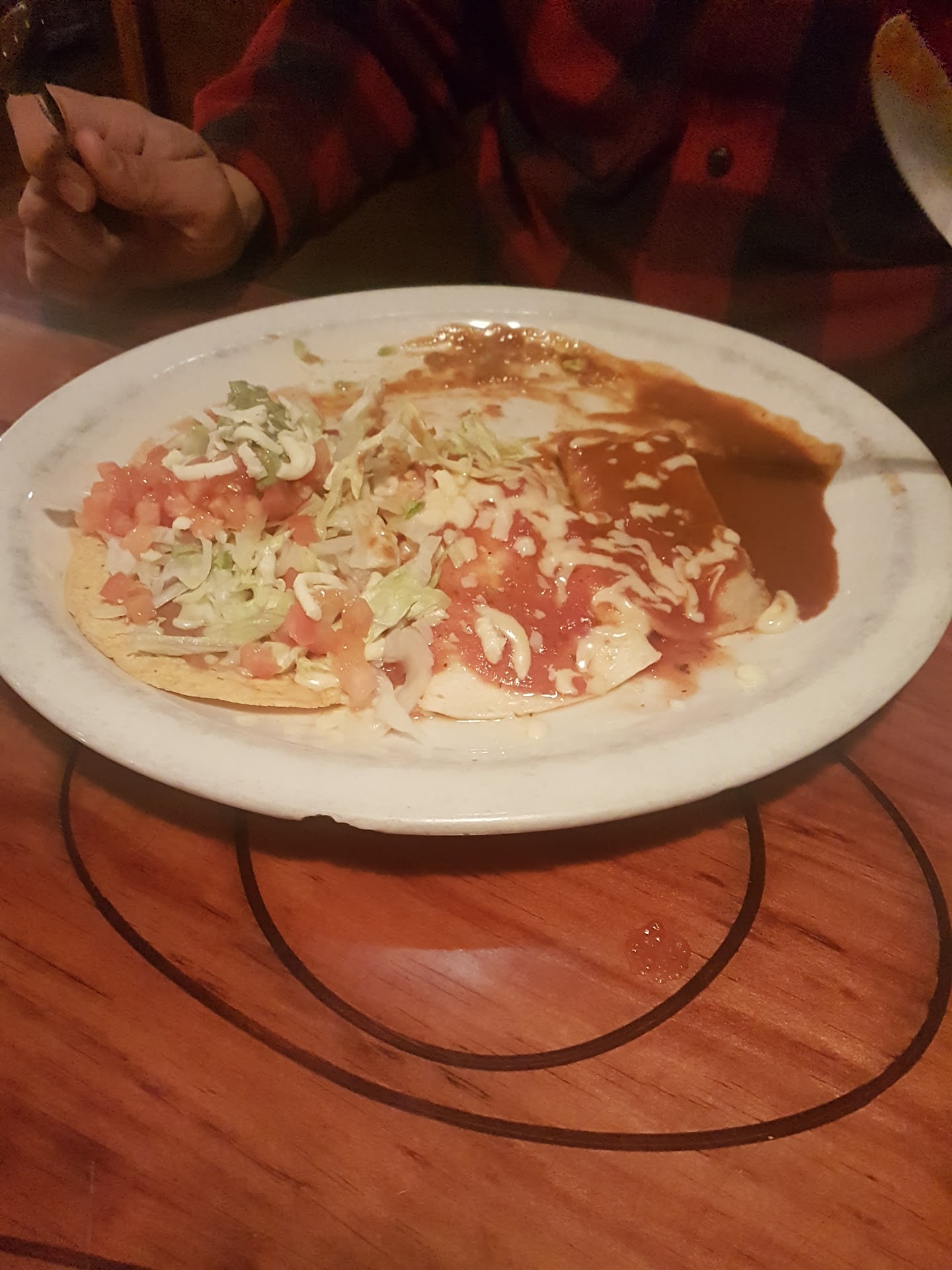 My son and I had order the fajita taxascanas . It's almost the same thing as Chile's trio in a way . Honestly Chile's is better . They loaded up the peppers, onions , tomatoes and frugal on the meats. I had to wave people down to ask for extra plates , napkins , shredded cheese, ketchup, extra fajitas . The service was slow , they didn't take any plates or cups away until we got our check . I was pretty upset about this experience. I was mad that our table was full of dirty dishes , used napkins and garbage the whole time . It would have been a better experience if I didn't have to sit with dirty dishes in our faces for 1 hour 20 minutes . Then I had to flag the bartender down to get my bill after waiting 20 minutes after we ate THEN wait another 15 minutes to get the bill after asking .
