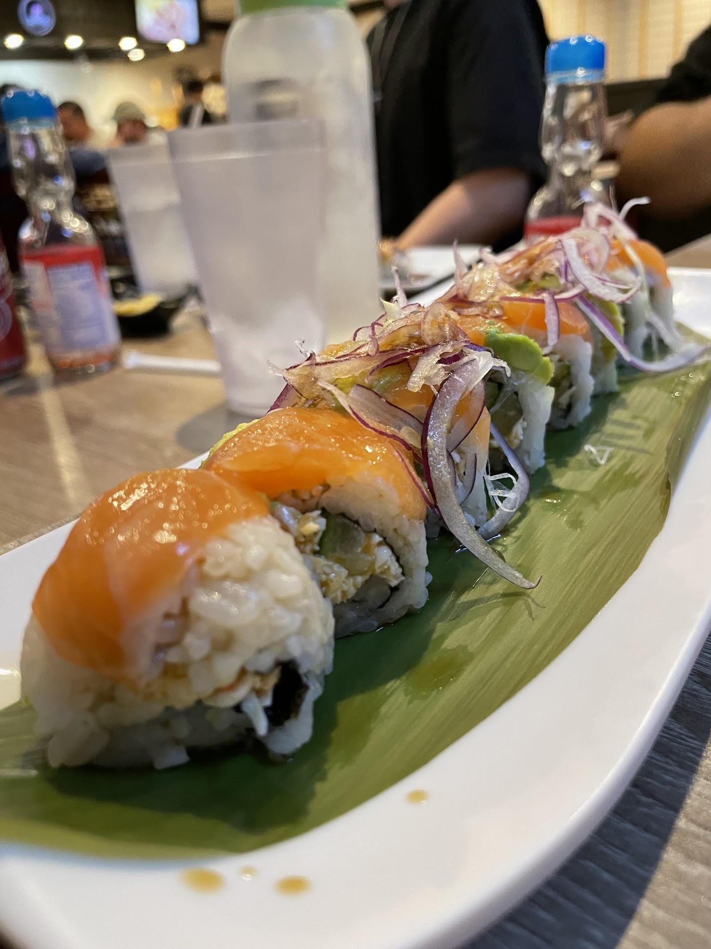 The harder and harder to find “All you can eat” sushi option is a nice touch. I opted to just order miso soup and two classic salmon rolls. One spicy, one not. My wife ordered the Spicy Edamame appetizer. I saw two dudes at another table who clearly ordered the “all you can eat” option get delivered more beautiful sushi, than I thought two people could possibly even eat. So, I took note at the sushi chefs’ attention to detail even on such a large order. It was two giant charcuterie boards full of sushi and rolls beautifully laid out. It was art on a platter!