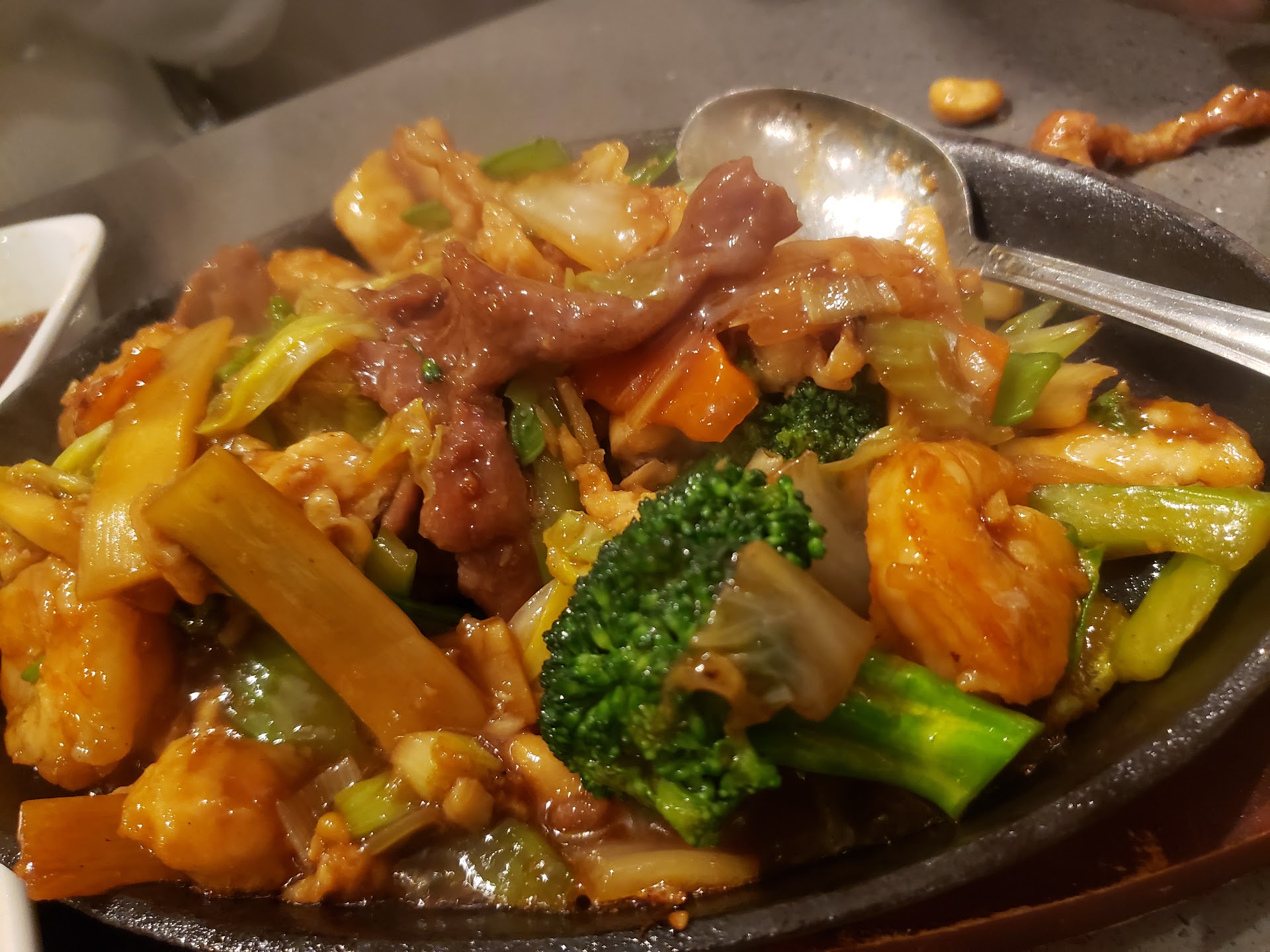 Read moreIt's amazing to eat there after 6 months one can only drive-through, pick-up, take-out or delivery. They have few tables outside their private patio area with gate. One needs to walk in the restaurant and walk out the side door to reach that area. We're the only table guests when I visited. Felt so good. My friend is a vegetarian, so we ordered only veggies and tofu dishes. Next time I will have some meat or fish or shrimp. Eat-in is good! Their dishes is not super delicious. To me, it's acceptable Westernized Chinese food. The soup-of-the-day that comes with the lunch special was a little bit salty. Maybe the kitchen was happy to have dine-in customers and got carried away on the seasoning. I felt salty because the soup had little grind meat for the taste. When my vegetarian friend smelled it and gave his soup to me, that second bowl of soup make me drank more water afterwards. Their hot sauce is good, just ask for a little dish of hot spicy sauce if you enjoy...