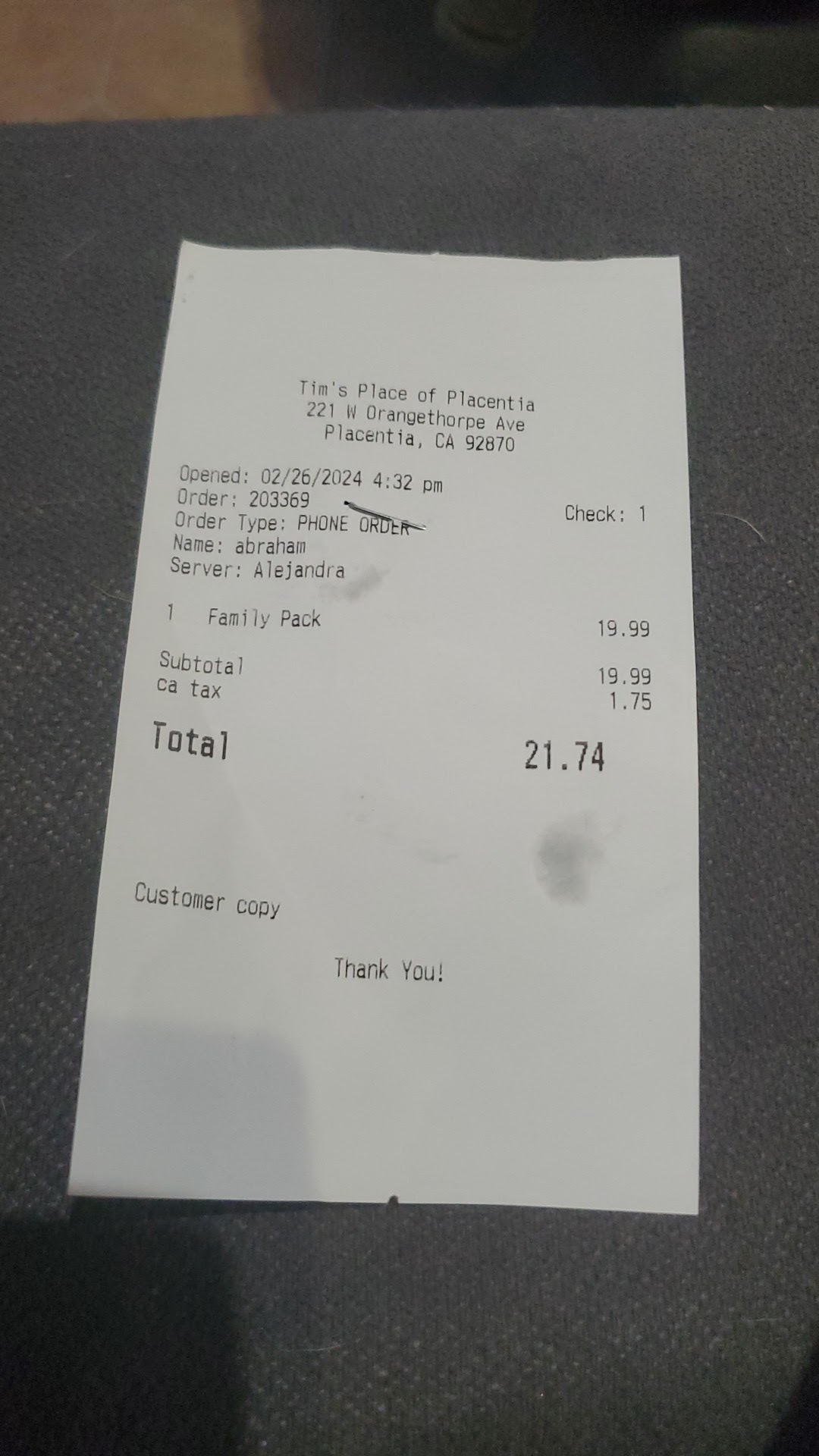 This place is like mixed nuts you don't know what you're getting? So I drove by the place many times it looks like it's called Tom's sometimes it looks like Tim's finally found out its Tim's I guess they used to be called Tom's and I guess there was some kind of issue with the name so they had to change it! So from the outside the place looks pretty good it always looks packed it was three of us that went there my wife myself and my son went there do you have lunch. The food's really good and the portions are ginormous that's a good part! The service was good! BUT AND BUT I SAY! The FLOORS looked pretty dirty I mean the were gross! They were disgusting! The interesting part is they give you coupons to go back! Will I I'm not sure! And not to mention that I had so much food that I had to take it home at the pastrami which was wrapped on the other half and the next day when I went to eat it I took off the wrapping and found a big hair inside the rapper I know it wasn't mine because I don't have hair on my head shaved luckily it was between the rappers and not in the food but...