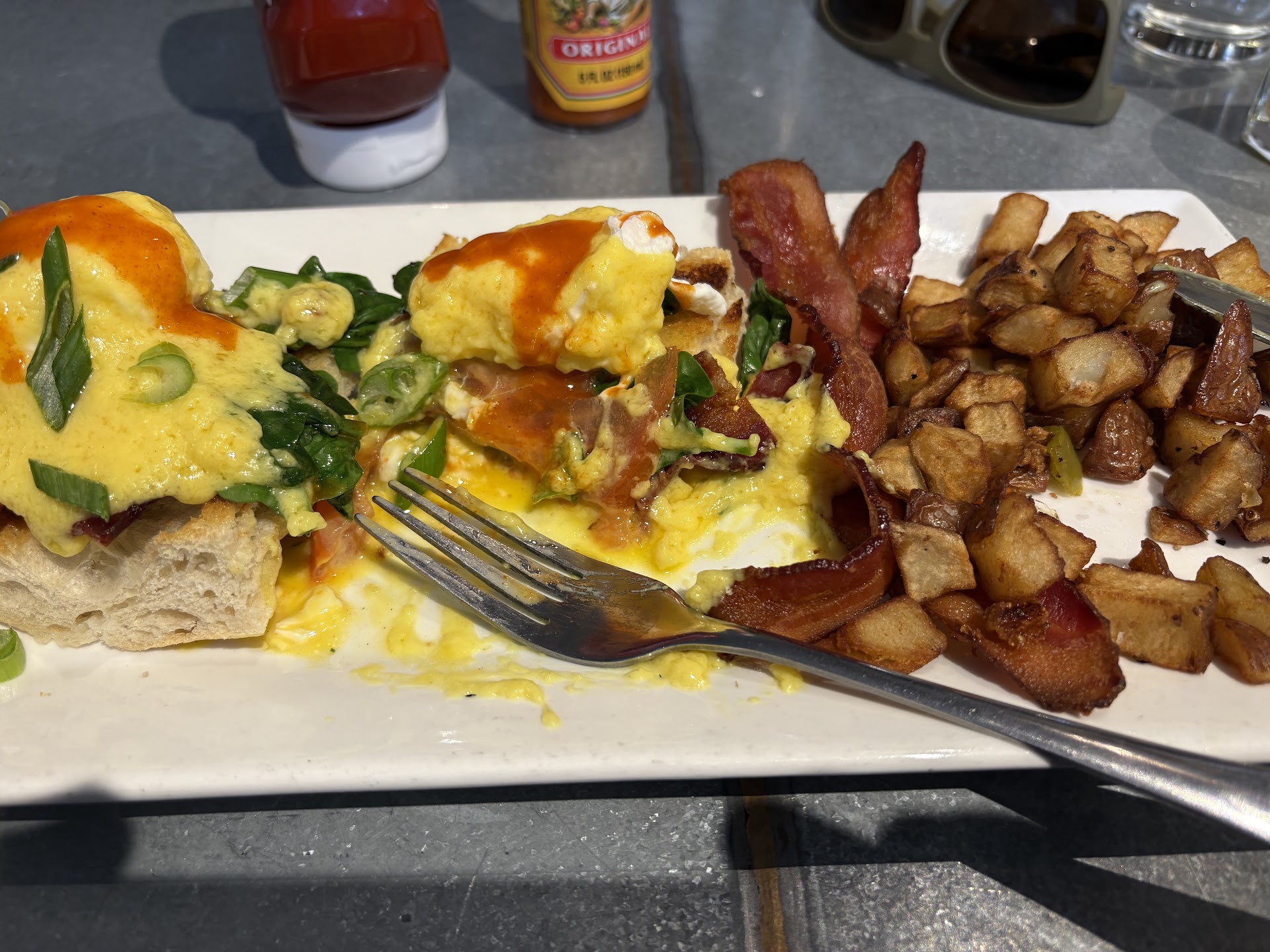 Edit: to be completely honest I wrote this as I was awaiting my brunch order. Update after eating—everything above is 100% accurate. If y’all have eaten at better places I’m all ears. Food is fire 🔥 and service is great. I got the two Benedicts combined—tomato, spinach and bacon. They even gave me a couple extra slices of bacon on the side 🥹 The potatoes are crispy and delicious. The photos don’t really do it justice but give you the basic idea (I...