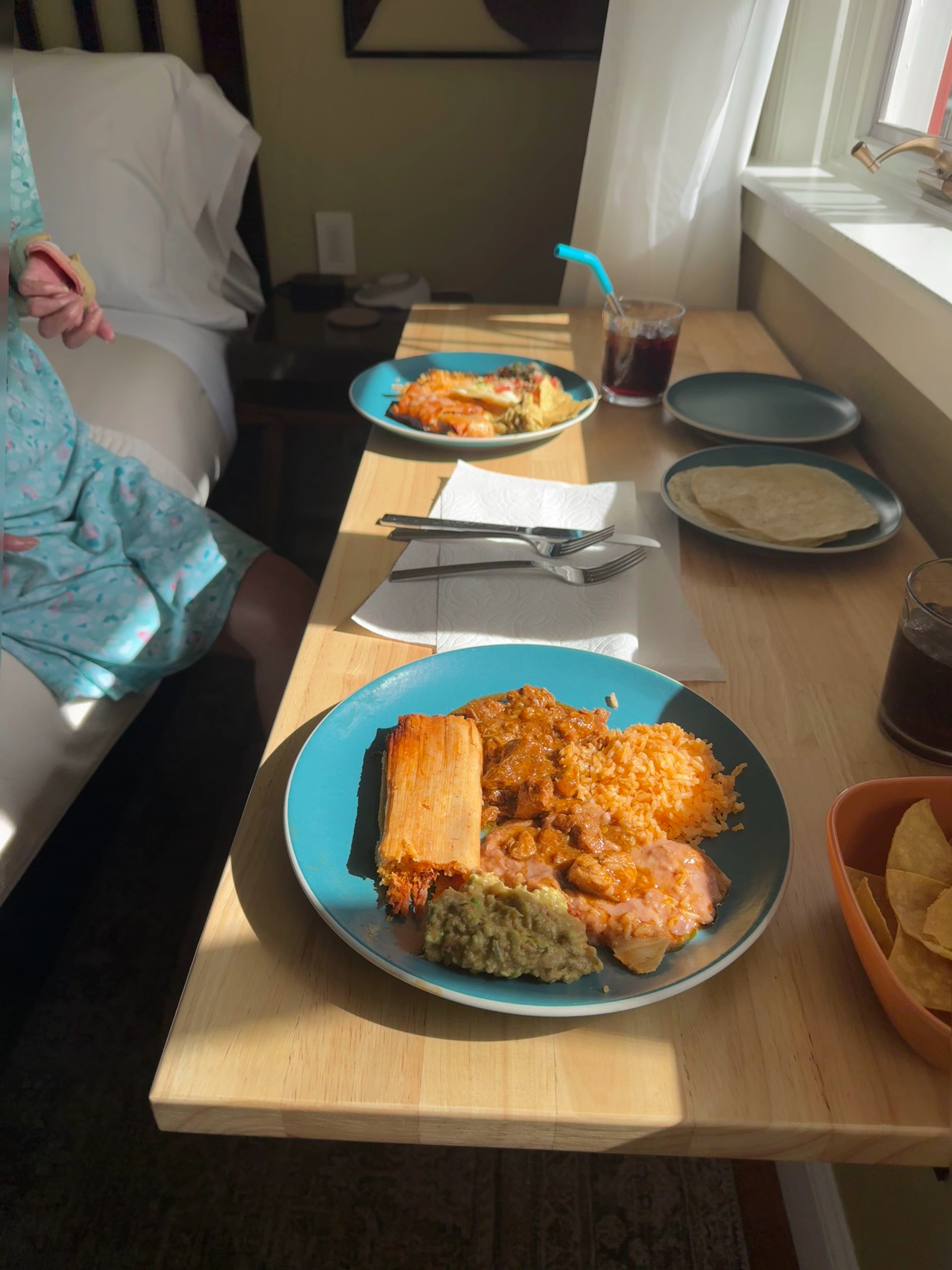 Ordered chicken and pork tamales, beef taco, chicken enchilada, chile Colorado with flour tortillas, rice and beans. It was all tasty, fresh, and authentic. The Colorado was one of the best I have ever had! I really liked that they had a variety of salsas to self-serve and they even had oven drawers keeping their chips warm for customers to help themselves. The person at the register was very cordial and accommodating and the food was ready within 10 minutes...