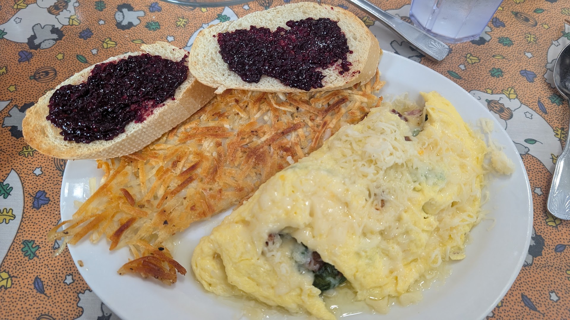 I wouldn't know because this morning, we wanted to celebrate election day.Though we only ordered two sides of potatoes, apple juice, and an apple turnover with coffee, I never received the apple turnover, the potatoes were lukewarm and tasted like they were nuked from the frozen section at the supermarket. My coffee was lukewarm as well. They took the TreeTop apple juice back and exchanged it for apple cider (from Apple Hill, expected from this area, one would think).