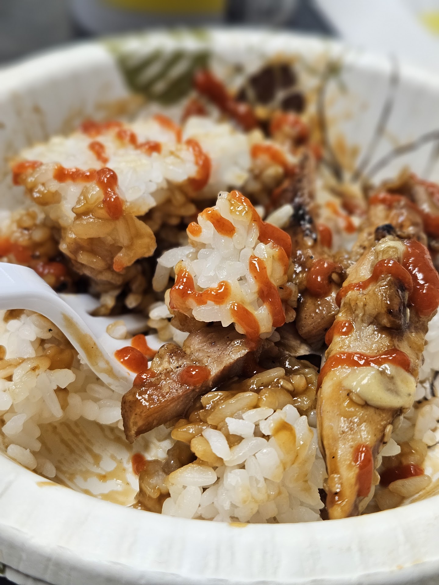I have been eating at Teriyaki Junction since the 1990's when I lived in Eldo county. It used to be a place to go to for a decent, healthful meal with tasty food at a reasonable price and the gentleman who worked (and owned it, I think,) was kind, friendly and professional. We stopped in tonight, I was not feeling well, so I waited in the car while my husband went it. I told him I wanted the Chicken Bento Box. It used to have stir fried veggies, chicken a good balanced teriyaki sauce, a small serving of rice, 3 California rolls and salad. It was a great meal. Tonight, it was hardly zero vegetables, sad and extremely wilted underneath too much chicken, a giant glob of sticky rice, like most of the to-go container was rice, and greens with the salad on the side. No California rolls. The sauce was clearly put on after it was cooked, because a couple of globs of it were like triangle shaped and never even looked heated up. It was not saucy, but glob like. Worst of all, it was not a balanced sauce, but just super salty. I feel assalted from my meal and I only ate about 1/3 of it. I also went home and made a quick stir fry of fresh cooked-crunchy veggies. The sauce was definitely not fresh made, very low quality. We also got gyoza and the dipping sauce was clear. I have never in my life seen clear sauce for gyoza; it's usually ponzu sauce which is dark in color. I should not have to go home and cook after buying to-go food in order to have a healthful meal. 2 heaping measuring cups of rice is ick. I rarely eat white rice and sticky rice is not pleasant eating----it's for sushi production. I don't know what happened to this place, but it's gone very downhill. The best thing about the food was the orange slice. If I could have had a whole orange like that, at least I would not still be hungry and my mouth may not be as dried out. I/we...