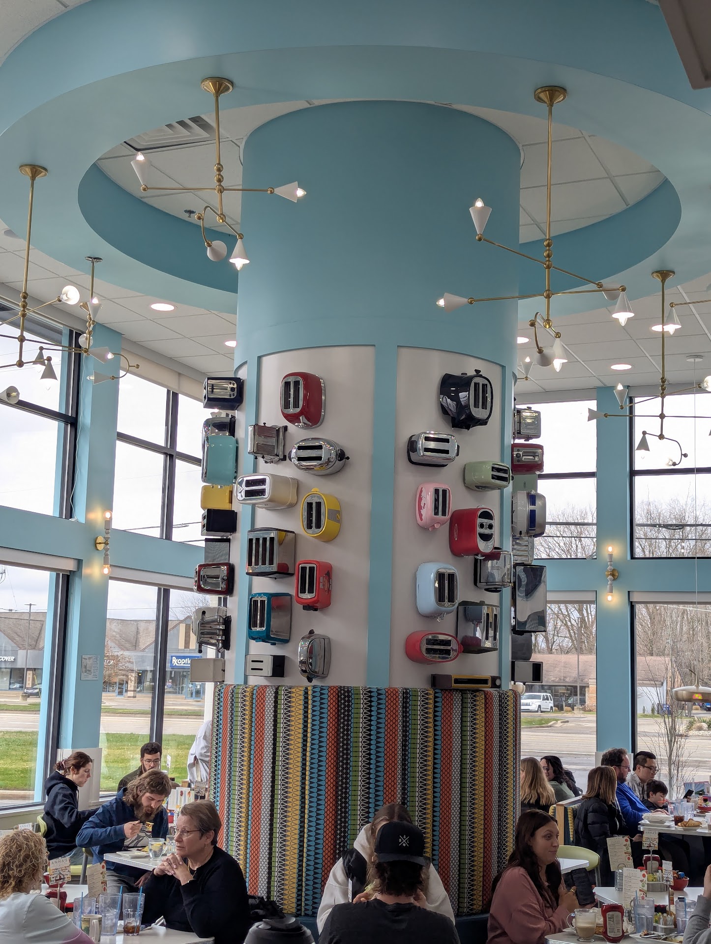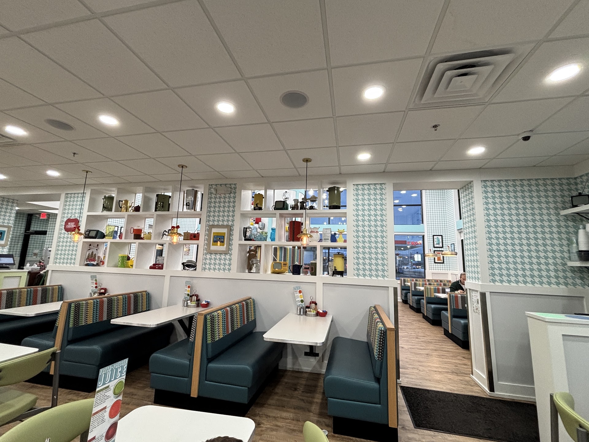 I was SO excited to see the old Burger King revamped in to the most adorable Anna's House. It is such a fun and unique space, the truly did a wonderful job renovating it! My kids LOVED the toaster column. Right off the bat, everyone we encountered that worked there was SO friendly! I was complimented by the host and our waitress right away - literally the sweetest people. We arrived at 10AM on a snow day and while it was busy, we got a table right away. This location has lots of seating! Love that they have kids menus for kid's to color on, AND the recycle the crayons - love it! I am always impressed by their menu - unique, creative, and everything sounds delicious! I love to see a big vegan section, as well! One kiddo got french toast and devoured the whole plate. Second kiddo got chicken fingers and fries (yes, for breakfast lol) and the fries were SO good and the chicken fingers were nice big pieces. I got the Hippie Hash, sub guac for sour cream.. SO GOOD. I love a savory breakfast and I'm like kiddo #2 - i could eat dinner for breakfast, so i loved all the veggies and heartiness of this bowl. Our whole experience was great and I can't wait to bring my husband back. So happy to have an Anna's closer...