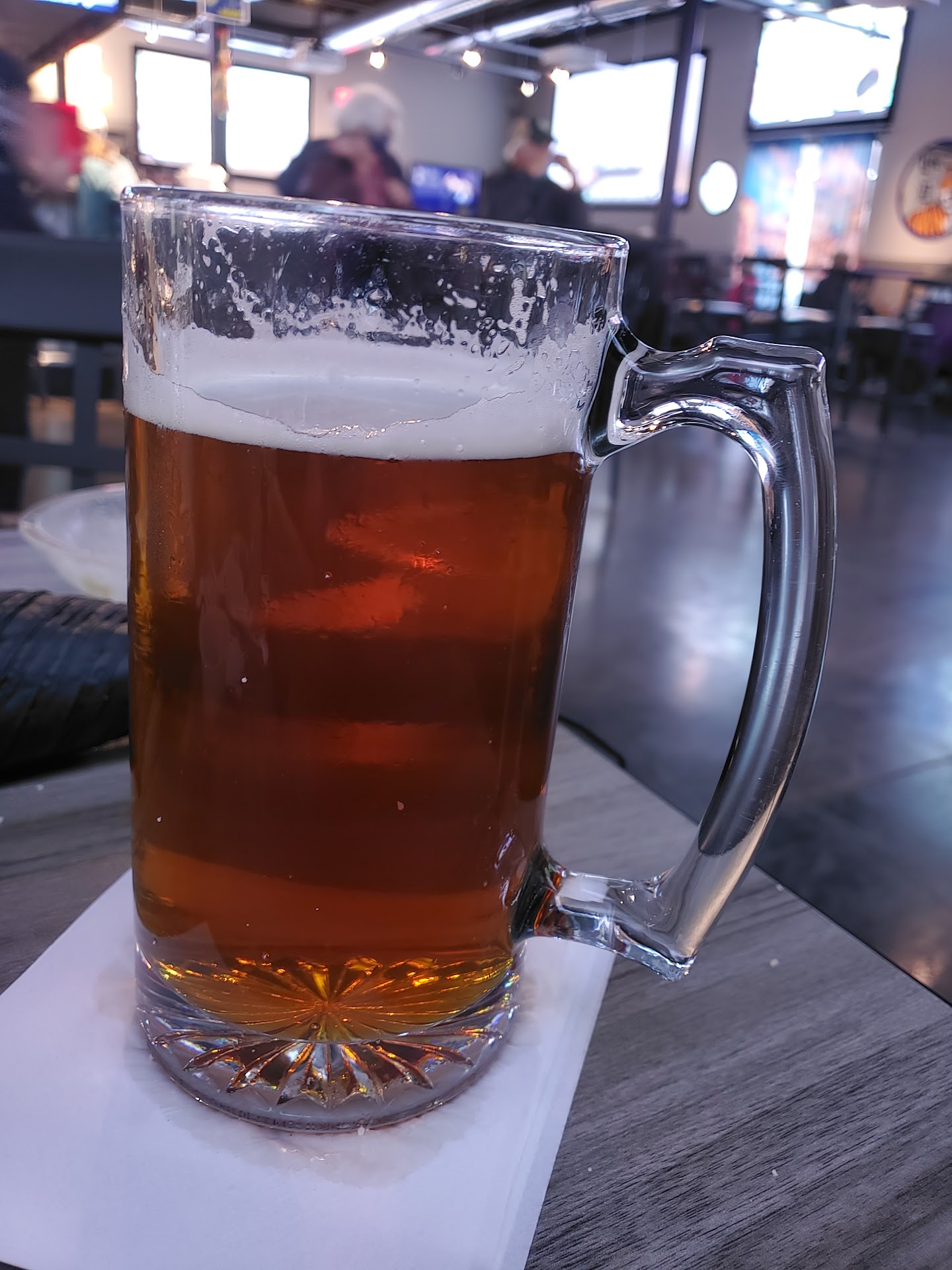 It is an open ceiling environment that felt spacious, but at the expense of not feeling as cozy. There are TVs with sports displayed in a lot of places.