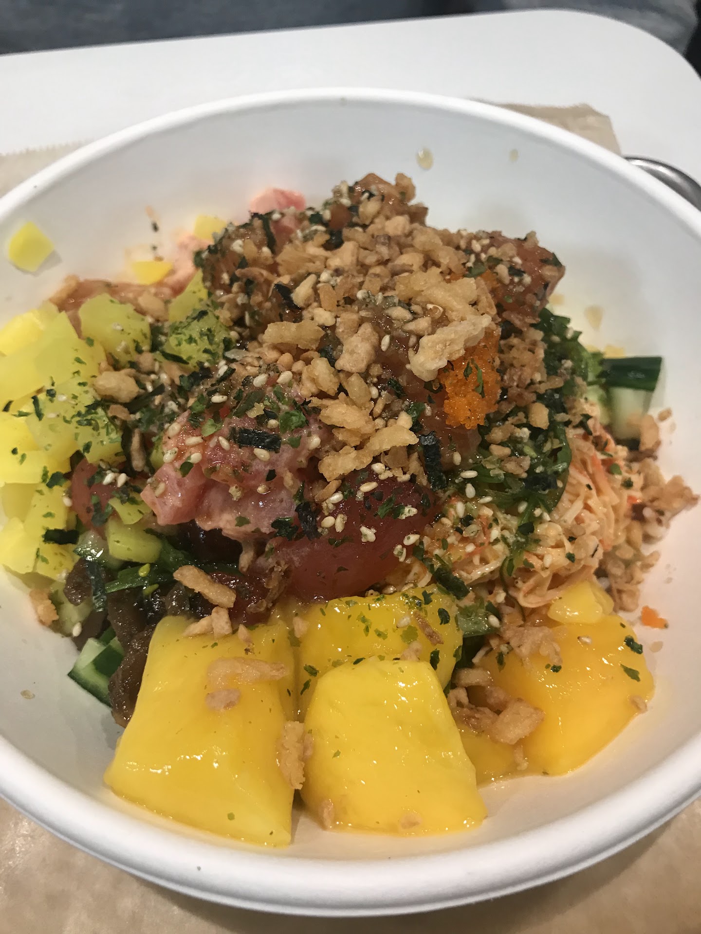 Read moreReading over other reviews, I would like to opine on a couple comments about pricing. Many people expect Asian food to be cheap. Some of it is, and truth be told it's because the cheapest ingredients are being used for those restaurants. Not to mention the bare minimum amount of staff, or often times family members working for free. So yeah, it's gonna be cheap. And quality? You get what you pay for. Poke Toki uses fresh ingredients that are high in quality. Also, many of the ingredients used are ones that can't be sourced anywhere close to here. That ticks up costs as well. I don't understand how people are fine with paying 15 dollars for a sushi roll in a Japanese restaurant but gripe about paying that much for a big bowl of food that consists of the same ingredients, but even more of those ingredients! Anyway, the food here is delicious and authentic, and the plethora of customization is fantastic. The service is...
