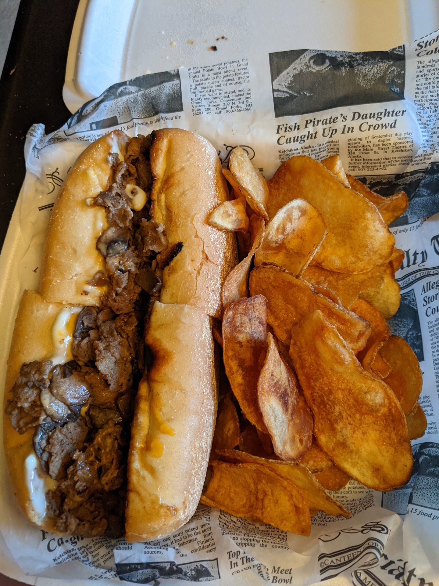 We had a cheesesteak, which was good and flavorful, but for the price, I thought it was small (compared to other local places) and could've had some more meat. The fresh cut potato chips were excellent! We also had the smoked gouda and mozzarella bites with "a side of tomato basil soup." The bites were good, and while the "soup" was very tasty, it was served in a 1oz portion cup. I wouldn't call that a side of soup. More like a watery dipping sauce. Still enjoyable though and would consider getting them again.