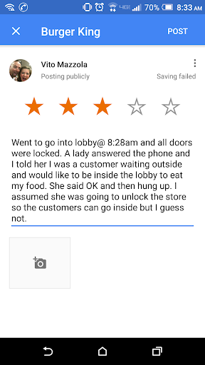 Read moreThis has to be the worst fast food place.not Burger King in general. Just this one particular Burger King. When i got there it was only me on the store with some customers in drive thru. It took 5 min just get my order taken. I seen 7 employees witch is more then enough to run this place. They seem to only want to make sure that drive thru customers are getting there food in a timely manner. I ordered a double chesse burger ketchup and mayo only and a choc shake. Now 3 other people have come in behind me 2 waited no time to get orders taken and the 3rd again 5 pluse mins just to get order taken. By the time i gave my order i didnt receive burger for 11 mins and then got my shake 4 mins behind my burger. It killed me to hear one of the ladies tell the crew that they need to juat slow down so not to make mistakes. They were already in low speed turtle gear. No what they need is to get someone in there that will really run the place. Its all woman om there and i have nothing against the ladies but these women just were not doing the best. They had two new young laidea ruming front line and drive thru and three ladies in a sandwich assembly line. This store was no where even close to being busy if they would have actually been slammed with. A huge lunch rush they would not make it. I work in a kitchen and i lnow if dont tak 3 woman in...
