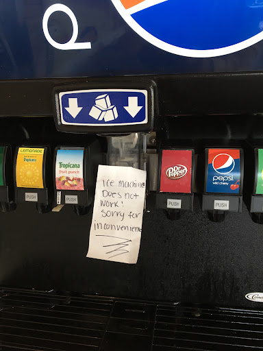 Settling for Dr pepper I looked at the fountain dispenser while I was sitting and saw what looked like mold or syrup under it; ( caked in) Very discouraging as I just drank it.