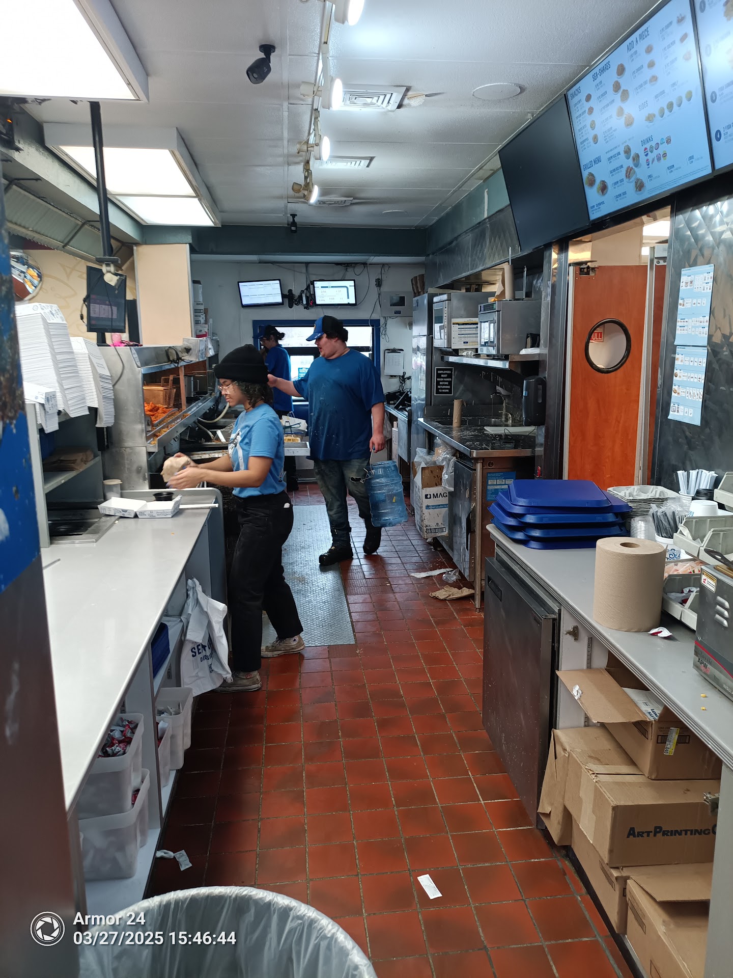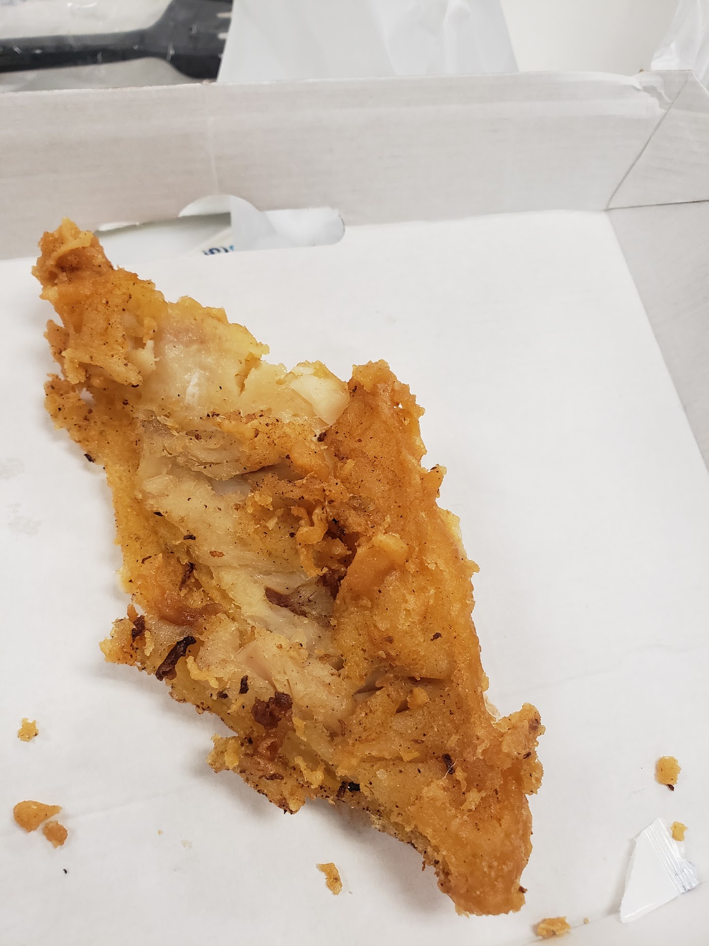 Sometimes the food is hot and very good. However this evening, the fish was NOT steaming hot, it was in their warming shelf. I don't know how long it had been sitting there, but when it does, the cooking oil saturates the fish coating/breading and then that makes it have a tough/chewy texture and it is just not pleasant to eat and enjoy. I absolutely despise the New packaging in which they serve the meals, Especially for "to go" orders. They used to be served in a cardboard "clamshell" type box. There was enough room to spread your fish or shrimp out, apply sauces etc. OR the sauces/ketchup could be placed in the corner of the box. This basically created a tray, that made it easier to dip into sauces, open a serving of slaw to place in the lid, or maybe cut the fish using the side of your fork. They now have this cheaper type box, that is easily Collapsible. Also the steam from the hot fish allows this new very thin cardboard box to become very soggy from the plastic bag. If u try to hold the box it then becomes very flimsy and hard to hold. The food is on top of one another, no place to put your dipping sauces, set the cole slaw or other sides, especially if eating from your car, possibly your office, thus making it a rather difficult experience. In addition to all this, the old cardboard box somewhat provided a way to soak up excess grease. The newer boxes are flimsy & collapsible. Only a tissue paper is put in the bottom of the box to absorb grease, the little "Crumbly" pieces from the batter often falls out the bottom of the box, makes a mess in your car, as the new box is just so easily able to fold up, can't spread your meal out to enjoy etc... Go back to the OLD CLAMSHELL HEAVIER BOXES!! I truly wish this review would somehow make it to the marketing department for consideration. Two stars on the food quality and one star...