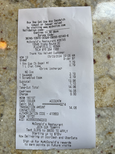 Read moreAbsolutely terrible, to start off the whole experience, they hate when teens come in (which is the dumbest thing ever considering it's build next to subdivisions and has free wifi). Generally they will immediately kick us out or give us fifteen minutes to eat and get out, which quite frankly isn't enough time to actually enjoy a meal. We are kids who just go there to get food eat and leave, but we're treated like absolute garbage because of one or two groups, which are banned fairly quickly. They won't even give water cups to us anymore because they're afraid we'll get soda instead of water, it's summer and kids need to stay hydrated, not everyone always has money to pay for a drink. We had one person there that told us to leave within 15 minutes at about 9:00pm right before two teens walked in and tried to use the bathroom, she called the police and that's the last time I will be spending money there. Sorry McDonalds but teens will be voting with our dollars. We are done being treated like garbage by your employees. To clarify this is the Plainfield, Illinois location just off of 135th street across from Walkers Grove Elementary School and next...