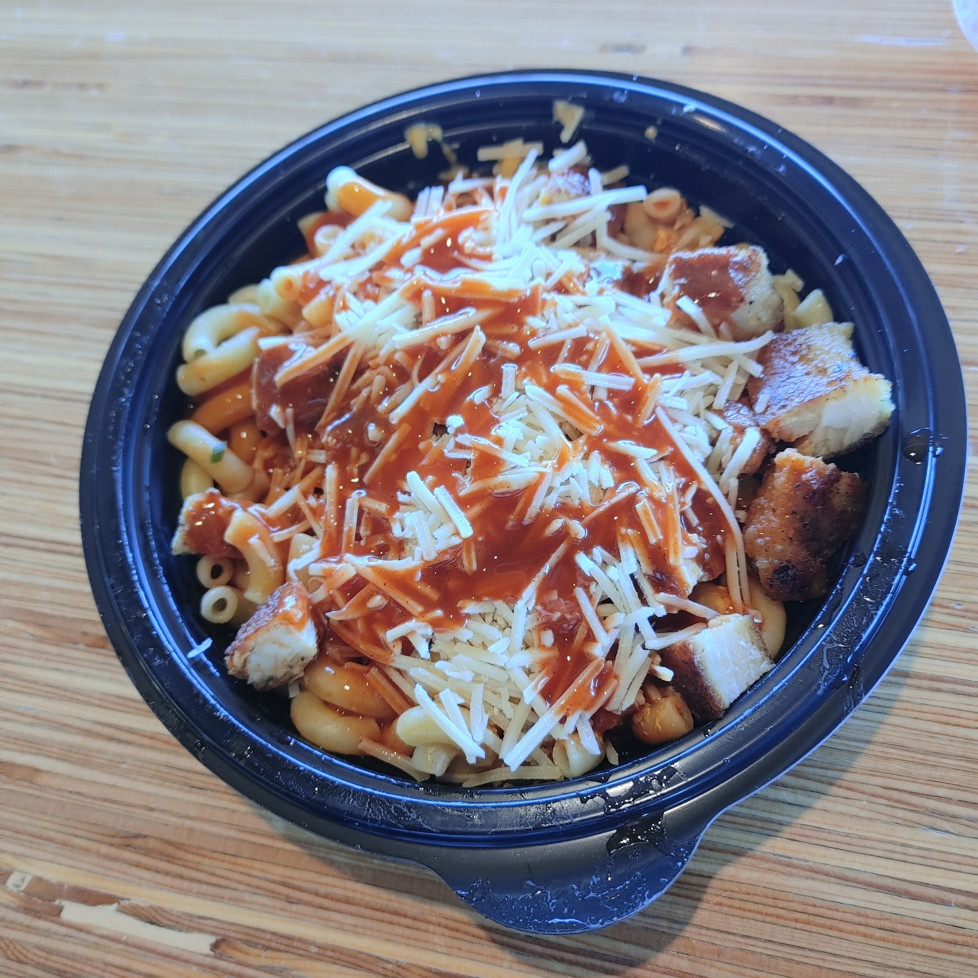 Read moreMy son ordered the Buffalo Chicken Mac. The Buffalo Chicken Mac was a disappointment. There wasn't a cheese sauce to make this a Mac & Cheese dish. Instead there was crispy chicken on top of flavorless elbow pasta, Buffalo sauce, and then topped with dry shredded cheese that never melted. The meal was more reminiscent of a Buffalo Chicken Pasta not a Buffalo Chicken Mac & Cheese dish. My wife enjoyed eating her Pad Thai meal with beef. She liked it so much that her bowl was quickly emptied. I ordered the Zucchini Pesto meal with grilled chicken. I enjoyed the freshness of the Zucchini noodles that were Al dented, the juicy grilled chicken and the flavor of the pesto sauce. The only thing missing was crusty Italian bread to sop up the pesto sauce at the bottom of the bowl. The staff was very friendly, helpful...