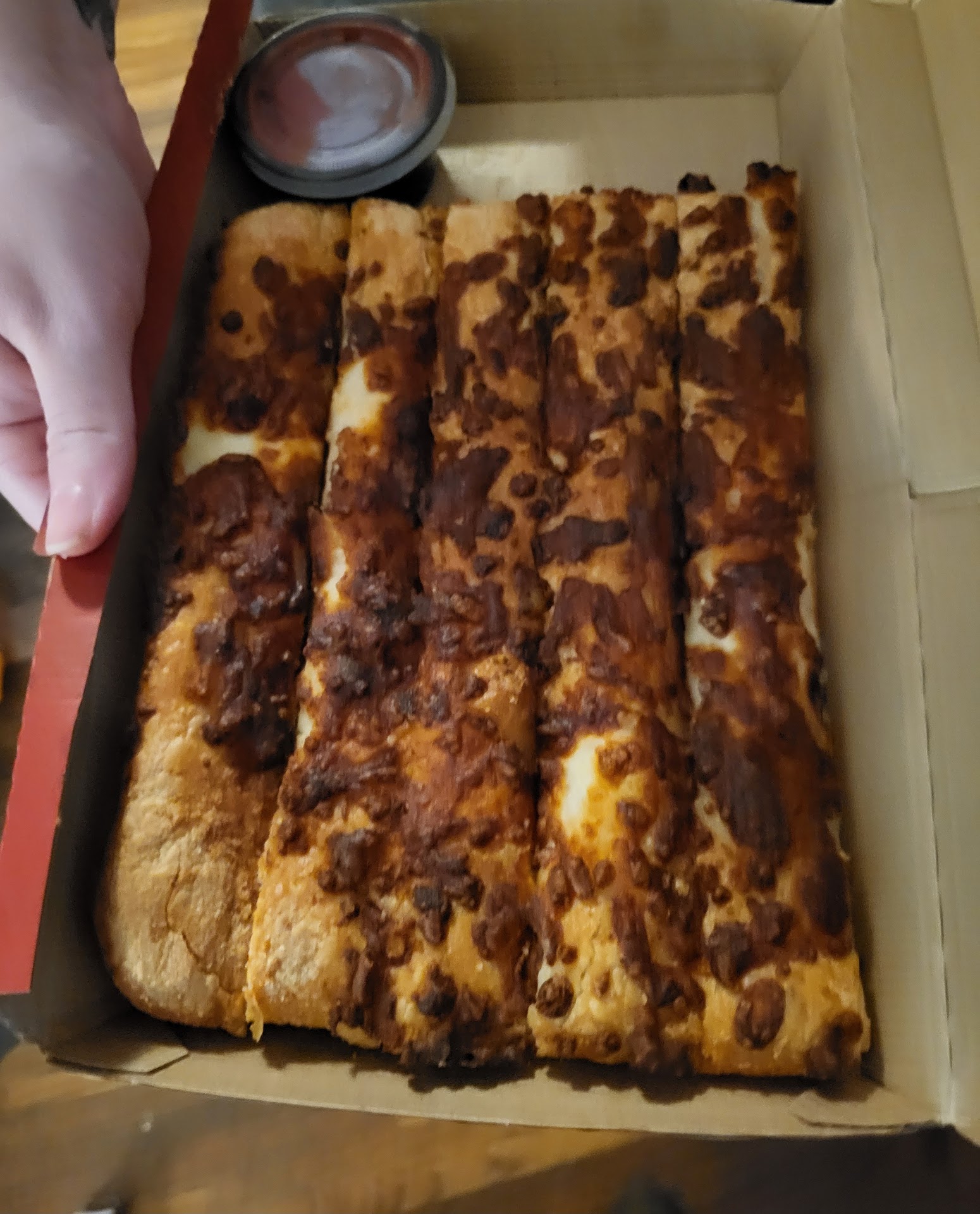 Also, other inconveniences include severely uneven slices as well as a limited delivery range. I have noticed that our pizza often comes with two slices that make up for about a quarter of the pizza each and six tiny slices. Why they would cut it to where the half of the pizza is shared by only two slices is beyond my level of thought apparently. Not super great if you are entertaining and expect an even ratio of pizza for your guests. Also, a few weeks ago, my boyfriend saw a women complain at the location for their heavy-handed slicing technique, so at least we are not the only ones to notice. And, although we live less than five minutes away in a seven-year-old house, we have to give directions to our house when we want delivery because our address is not on "the map" as they say. Which leads me to wonder why they are using an obviously outdated paper map instead of something more accurate and up-to-date like google maps or a gps.